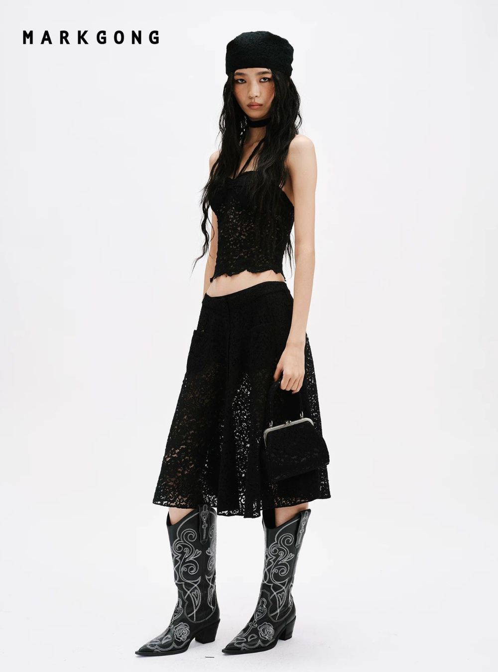 MARKGONG’s Spring/Summer 2026 collection explores a softer, more romantic direction, centred around delicate lace and sheer textures. Ethereal dresses, intricate layering, and fluid silhouettes highlight a sense of femininity, while subtle structure adds contrast and definition. The collection captures a balance between vulnerability and confidence, reimagining modern allure through lightness and detail.