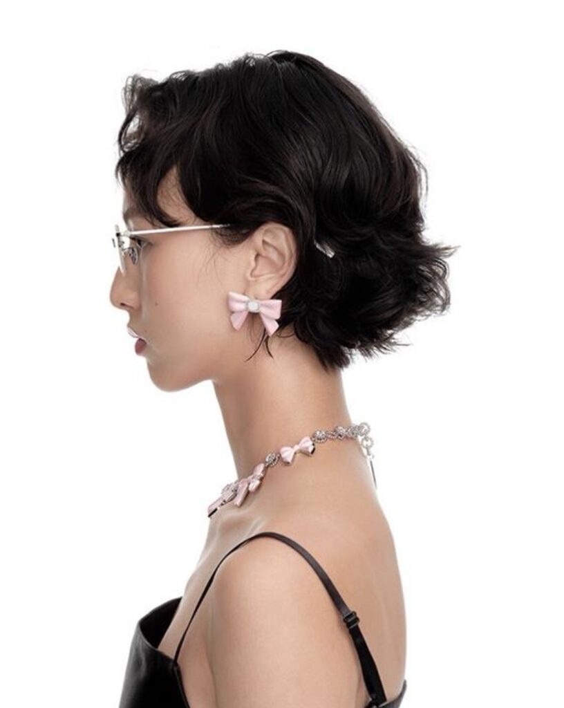 Yvmin xSHUSHUTONG White Mother-Of-Pearl Ceramic Bow Earrings in Pink and Green USD $183.79 239 Add To Cart
