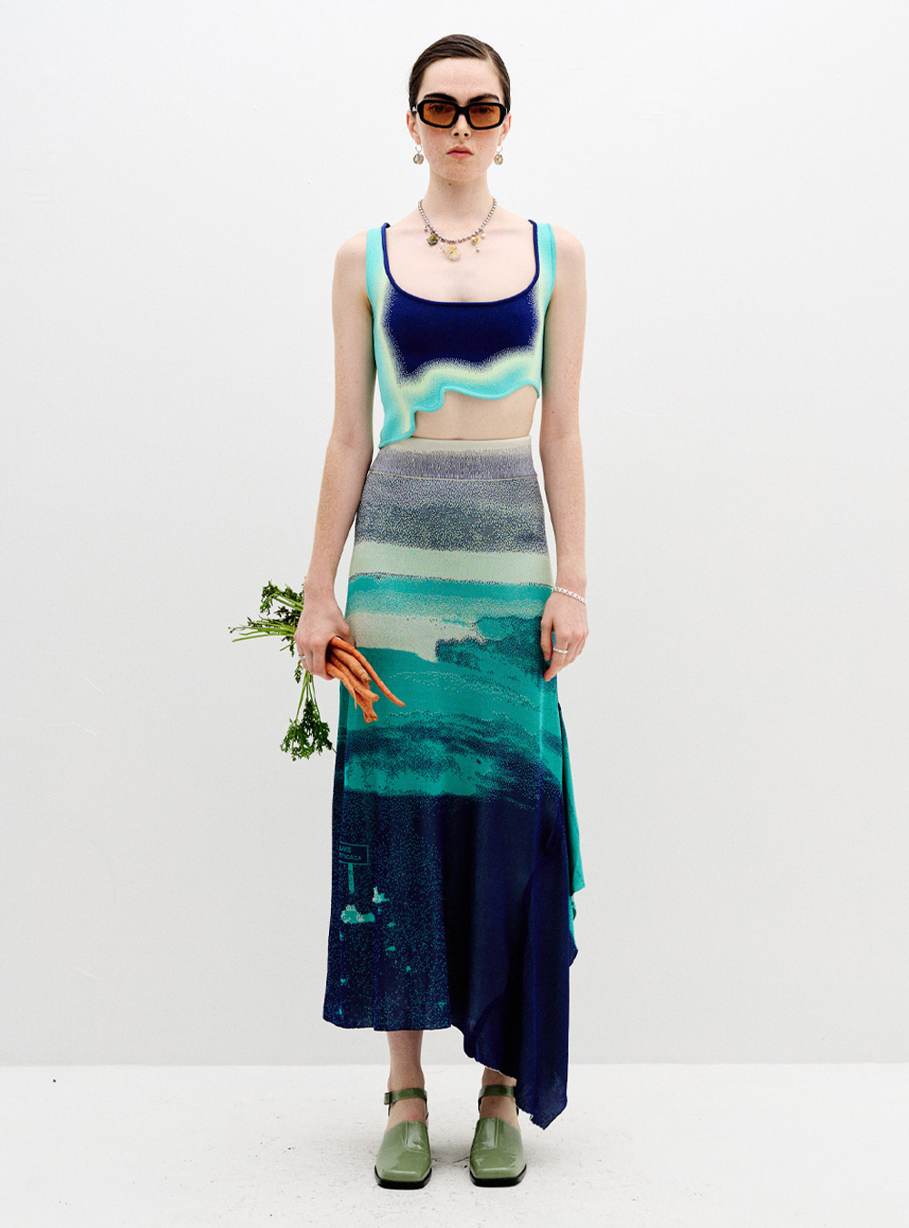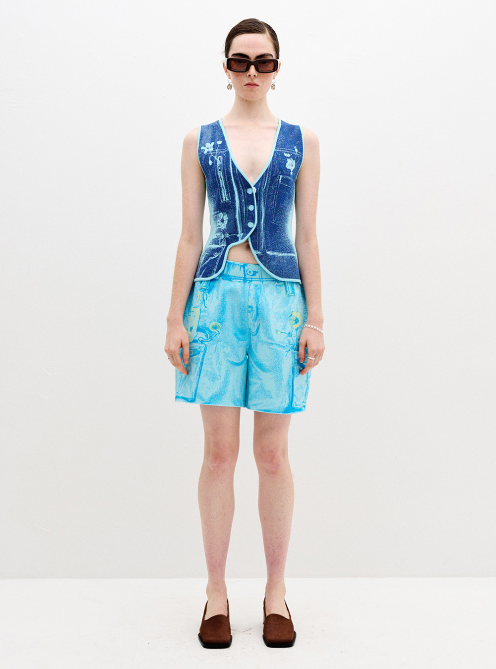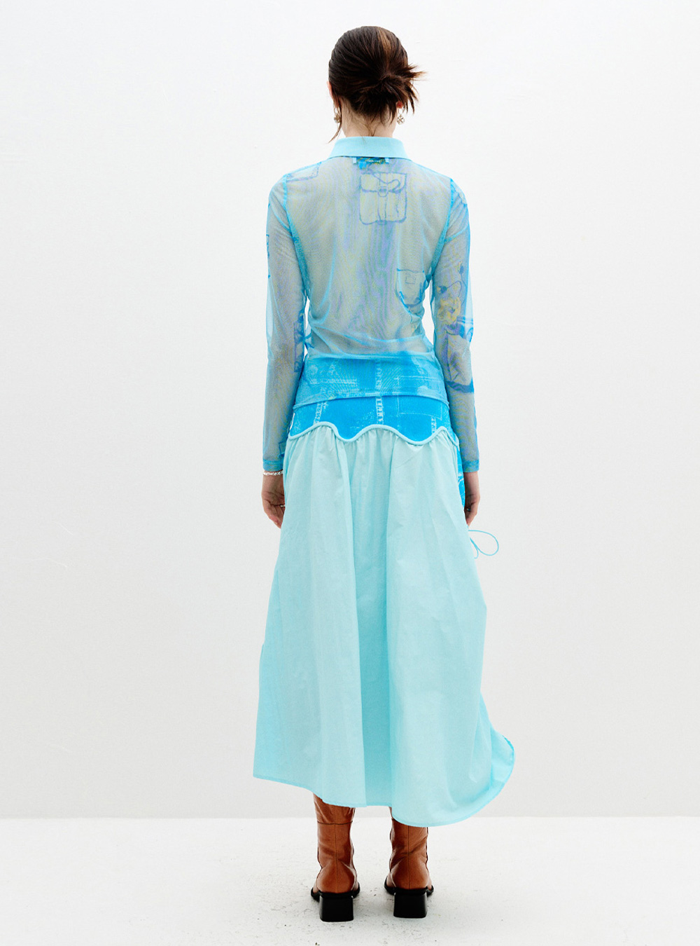 Oversized Blouse with Bow Neckline in Georgette Blue
