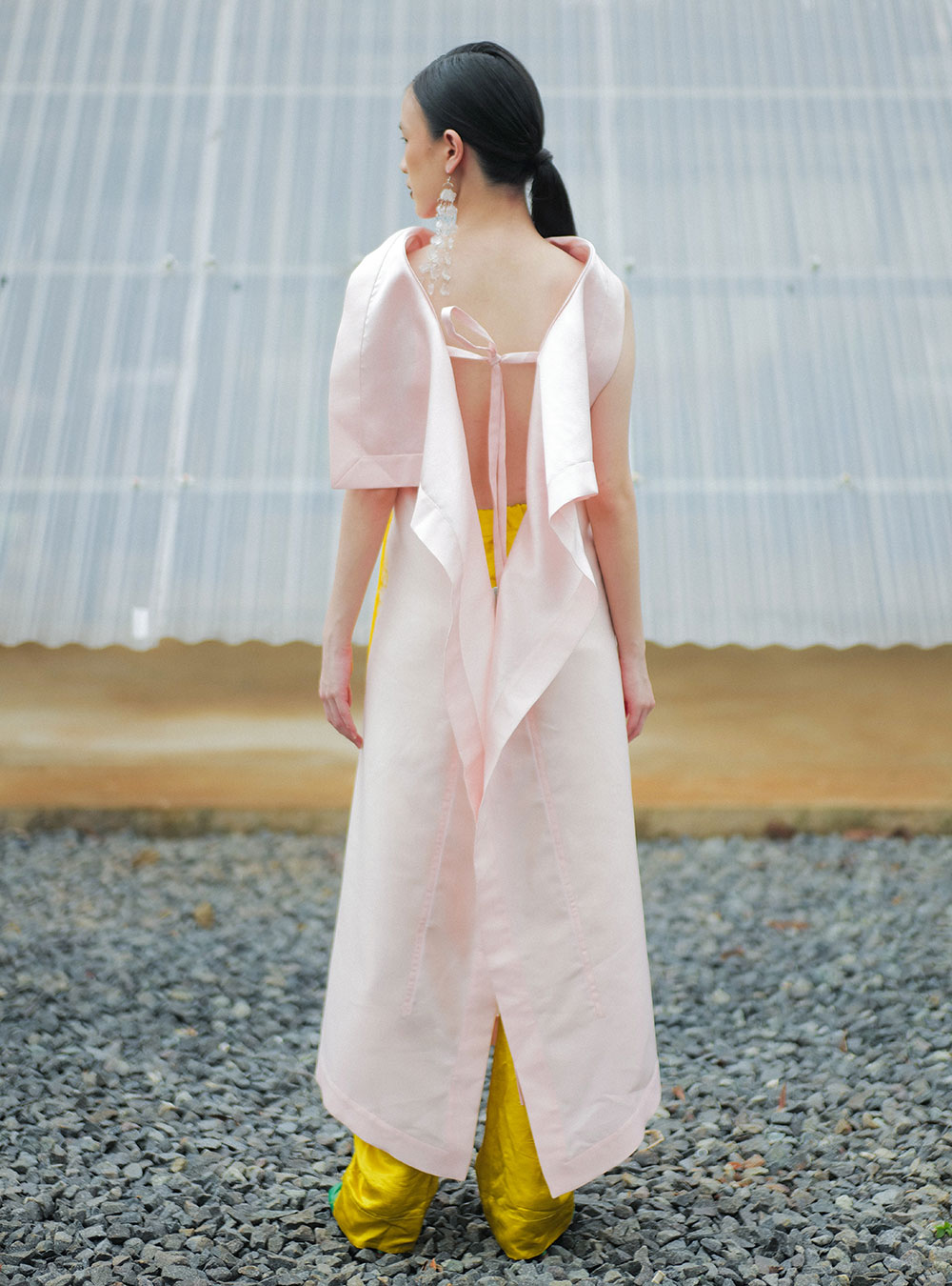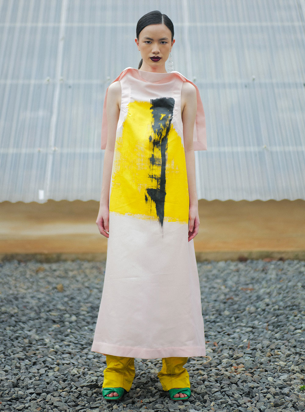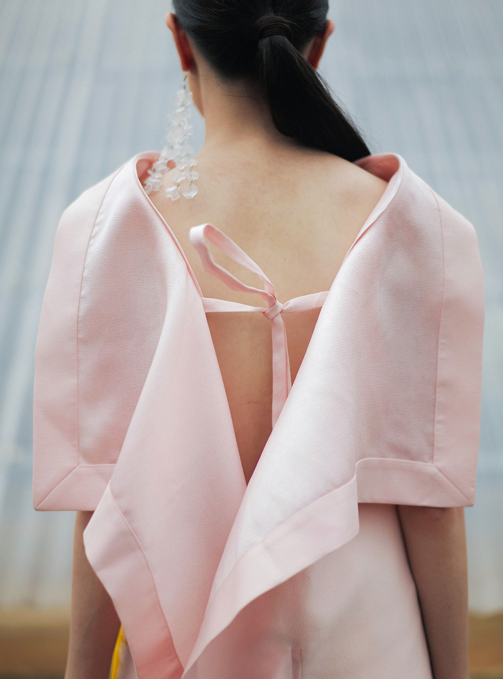 Sean Sheila Spring/Summer 2022 collection draws inspiration from William Golding “Lord of the Flies” and its film from 1963. This collection is an homage to the purity of youth and its transformation towards savagery that is derived from nature. This season challenges the classic silhouette of a tailored garment by gently deconstructing it into new shapes before finishing off with Sean Sheila’s signature hand embroidery. The intricate motifs take inspiration from tropical plants and insects to create a symmetrical blossom, while the colours of the collection – Blush Pink, Tuscany Yellow, Beige and Charcoal are inspired by paintings of Georgia O’Keeffe.