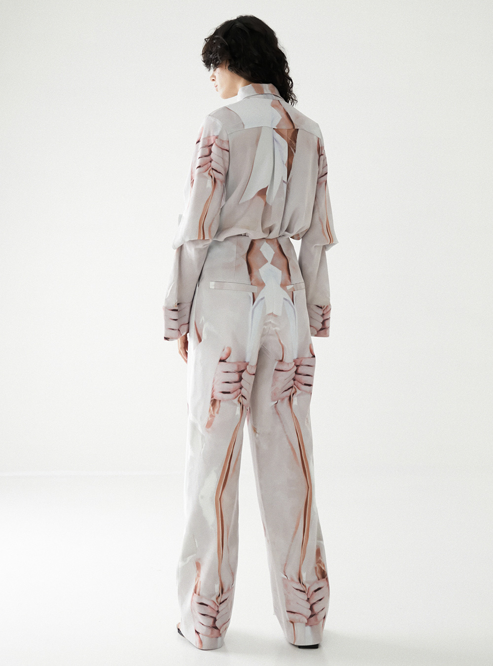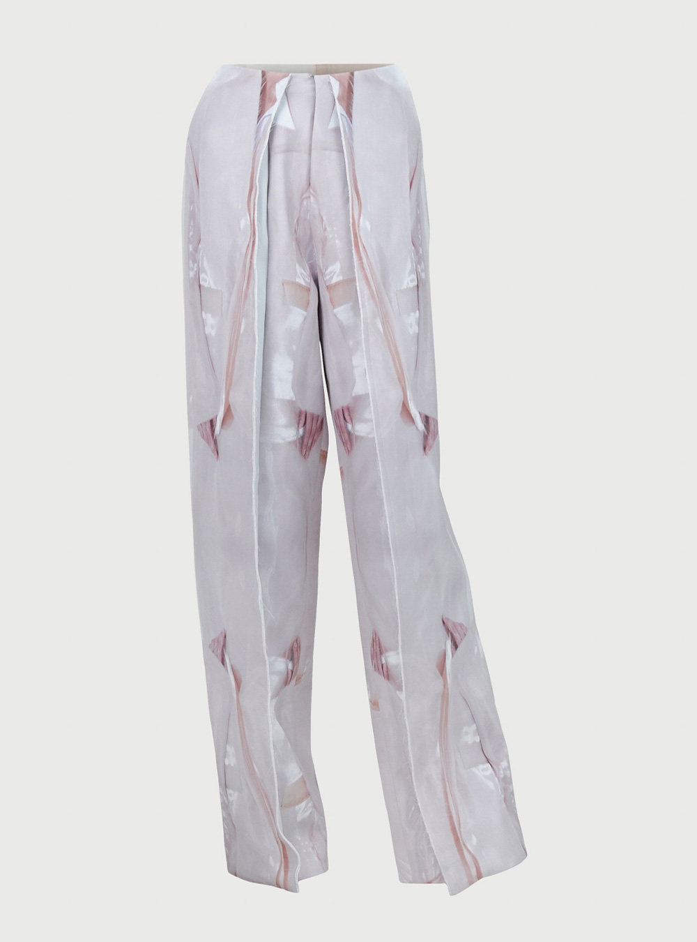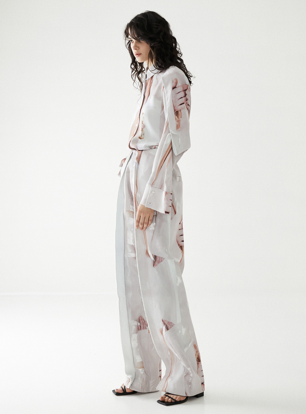 The Abstract Printed Pants is a pair of pants that add extra style points to any outfit. With a unique abstract print, this relaxed-fit pants have slits with zips to adjust the flare of the hem, allowing the wearer to create different silhouettes with her outfit.