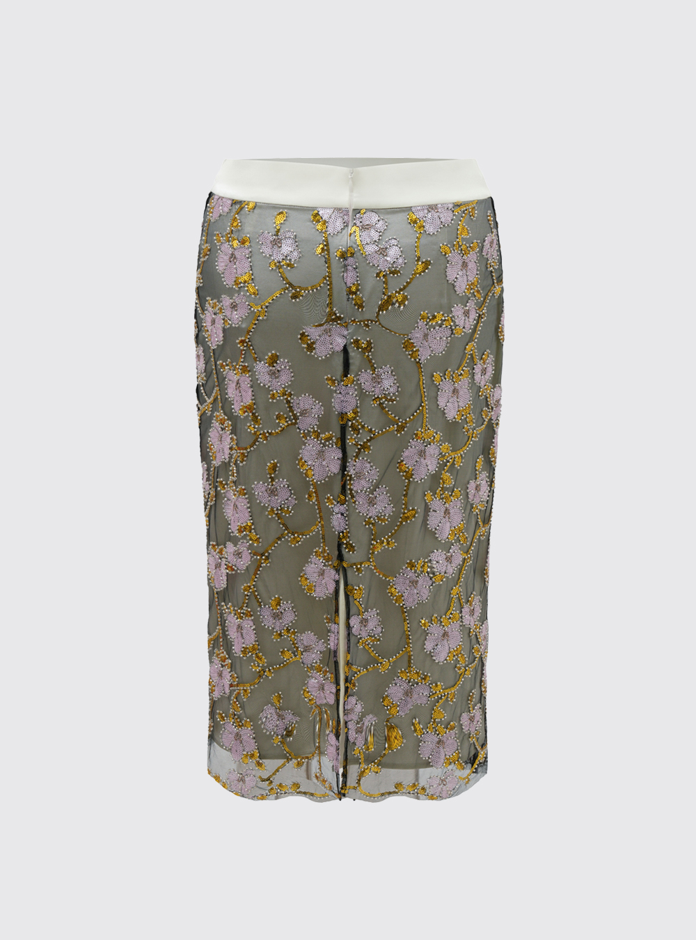 Capture the essence of feminine charm with the Albizia Flower Embroidered Skirt. Delicate flower embroidery adds a romantic touch to this chic skirt, making it an ideal choice for those who appreciate whimsical elegance.