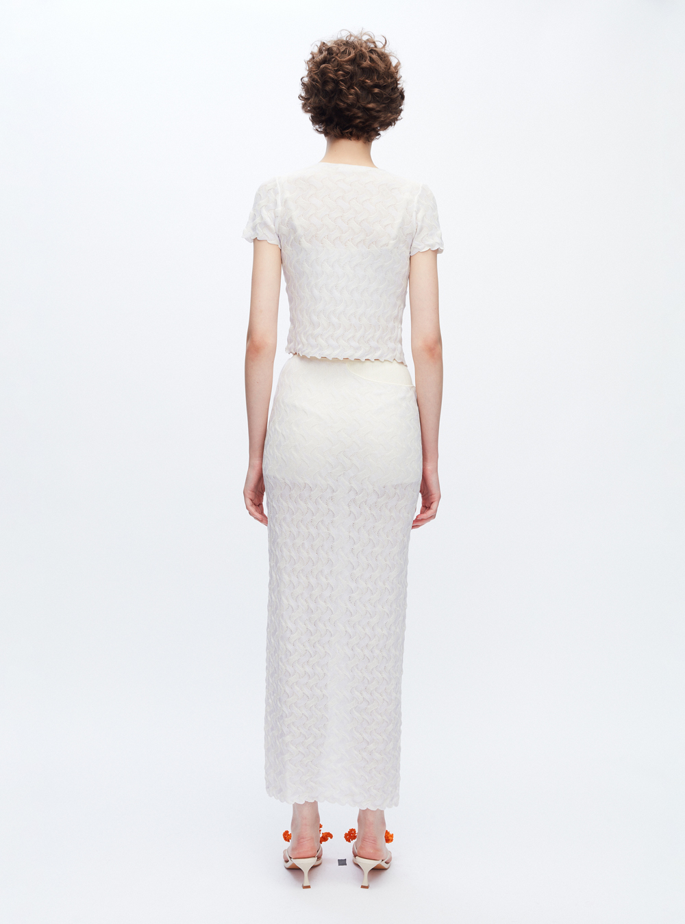 The Alcazar Wave Jacquard Buttoned Top refreshes your everyday wardrobe with its luxurious jacquard fabric and captivating wave pattern. Versatile and effortlessly chic, it transitions seamlessly from day to night, ensuring you stand out with sophistication.