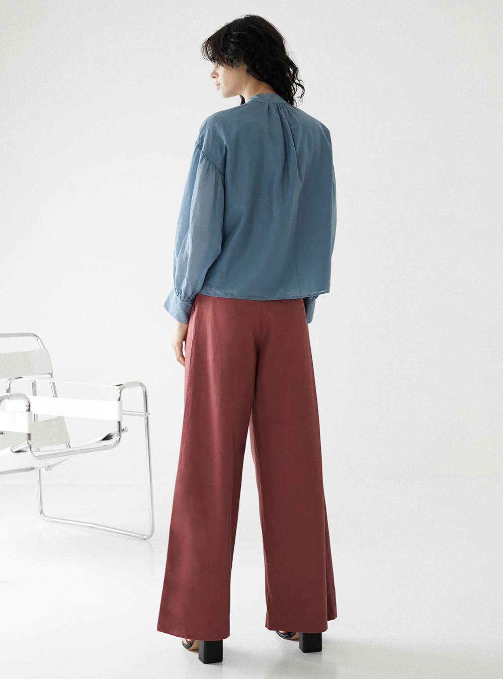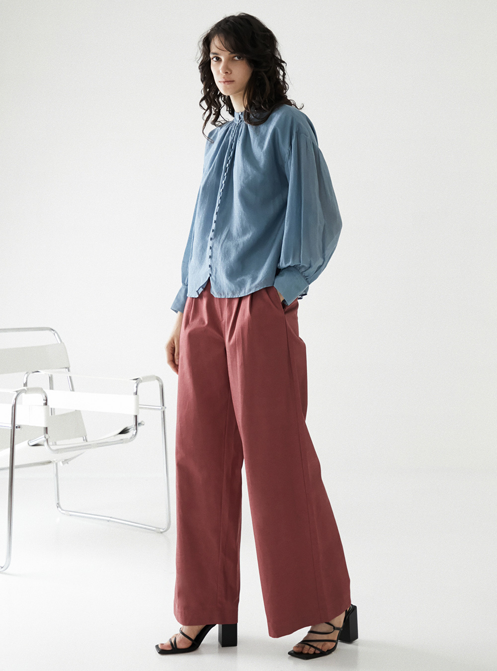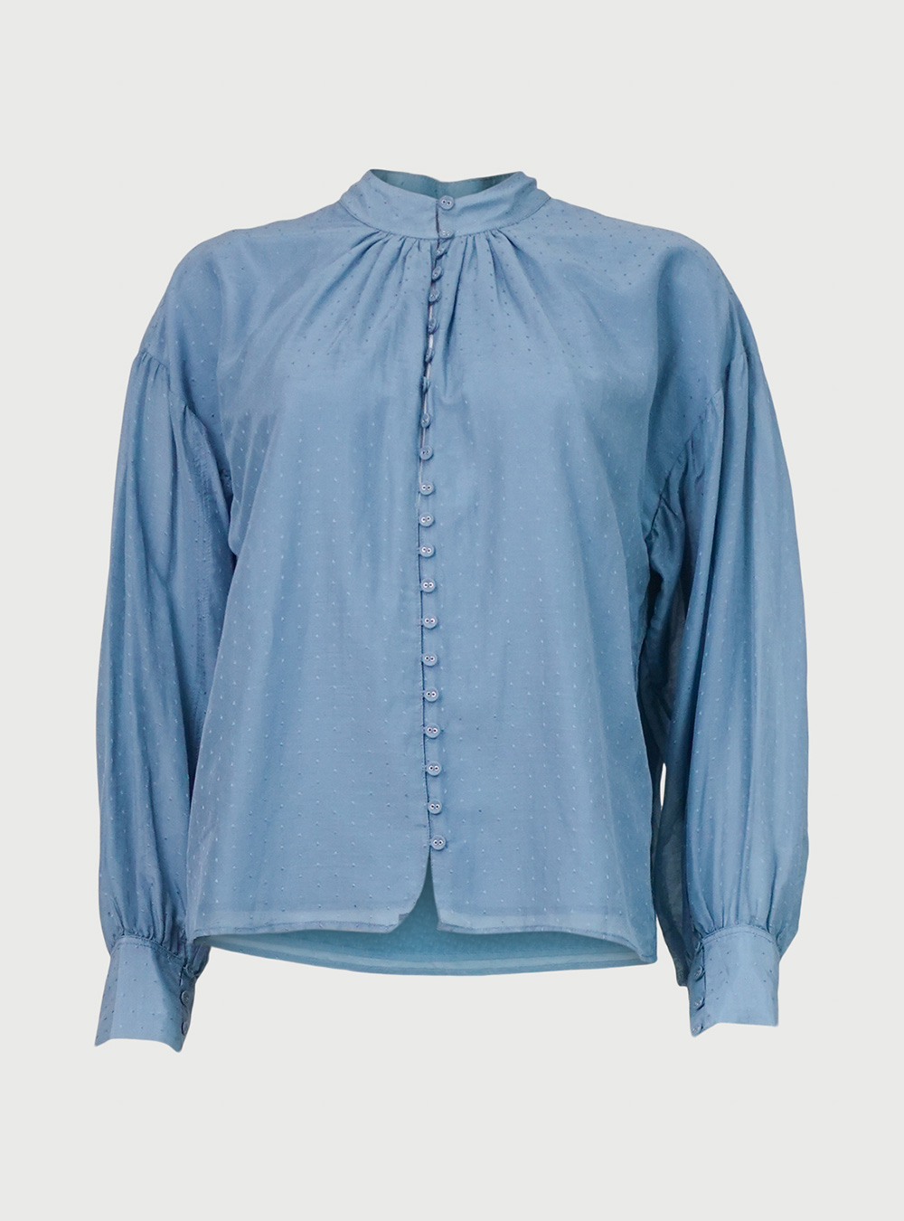 Featuring a round collar, loop and button detailing?across the front, and an adjustable waist, the Anita Shirt is an updated version of essential MP styles. It can be worn open or closed, and is designed with full length sleeves that can be rolled up depending on desired look.