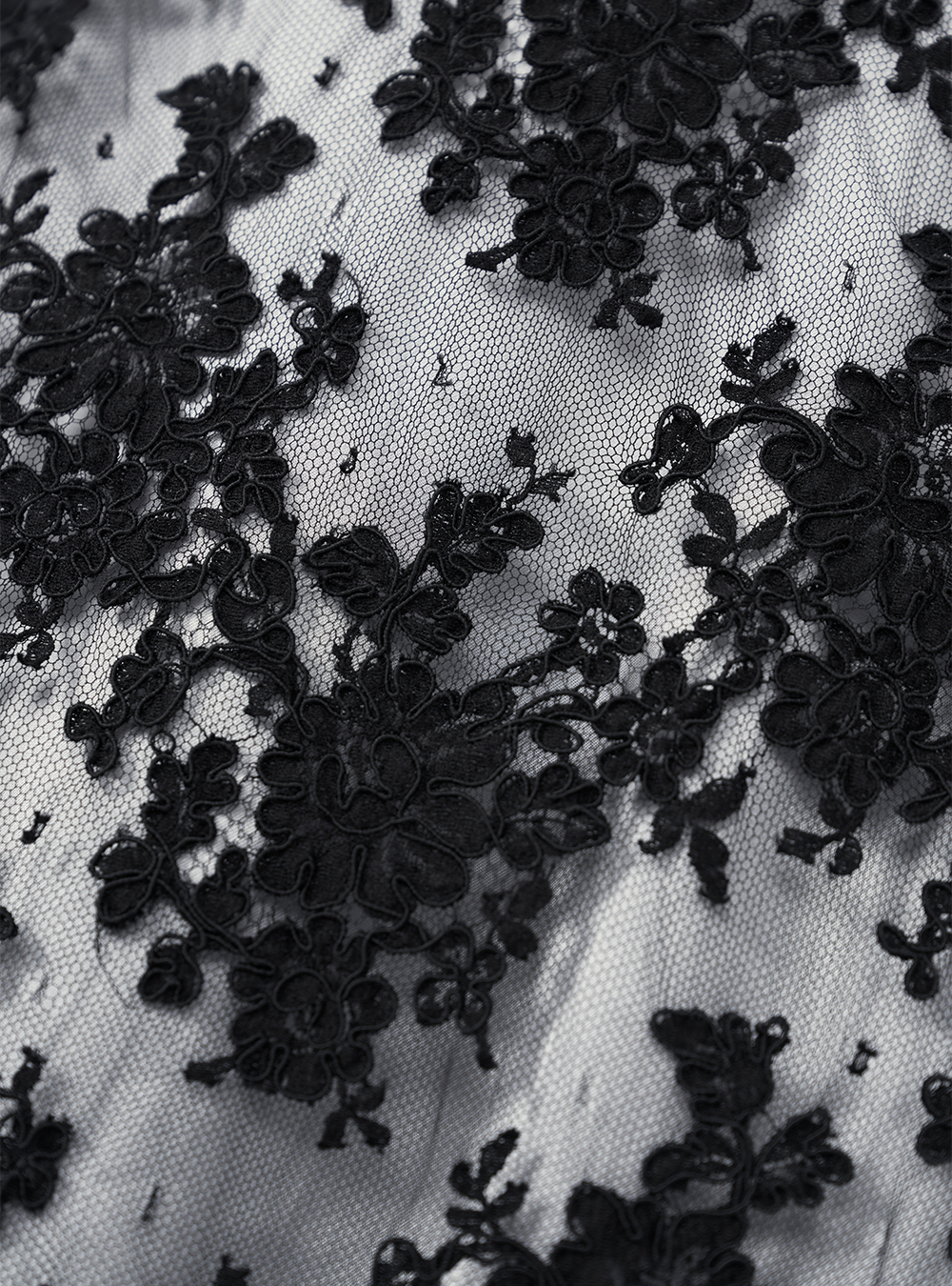 For Fall/Winter 2024, Louis Shengtao Chen creates visceral expressions from tangible materials and objects. Rather than centering the collection on a theme, he leans on freeflowing emotions to create a collection that’s fragmented, elusive yet intense and raw. A labour of intuition, emotions become tangible as pieces are fluid and feature amorphous detailing. Chen evokes an air of refinement, stemmed from a collision of textures, materials and hues—featuring draped lace on black wool, delicate georgette in a patchwork format.