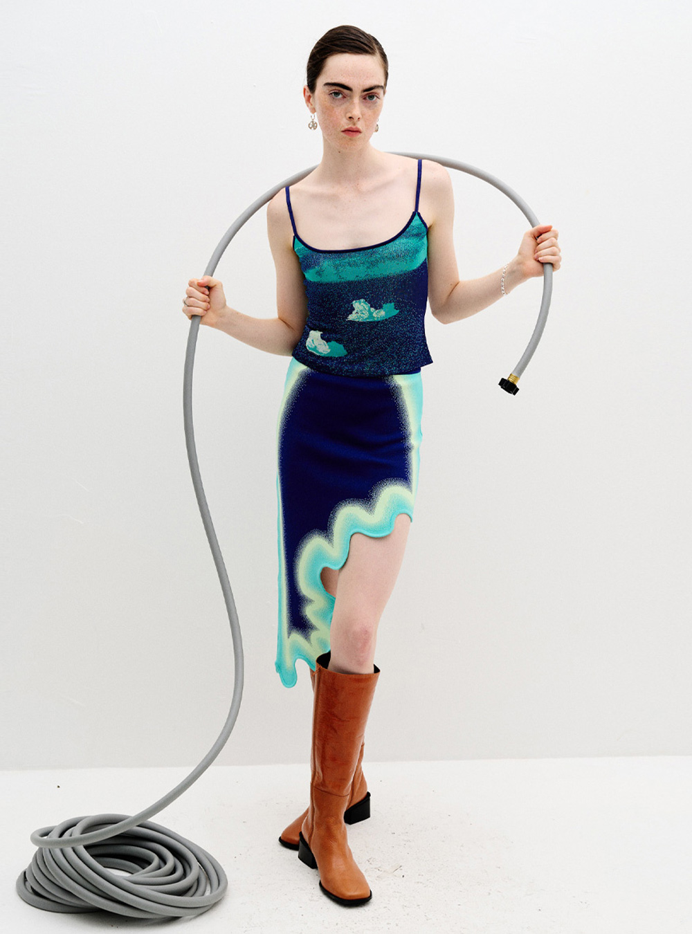 The spirit of activism is woven throughout PH5’s Spring Summer 2025 collection, merging the endless allure of mother nature and human innovation. Drawing inspiration from the neglected species in animal conservation, the collection features soft, languid silhouettes juxtaposed by structured, sculptural forms—embodying both the fragility and resilience of nature. In vivid hues reminiscent of tropical wildflowers, details evoke a spirit of dynamism and fluidity.