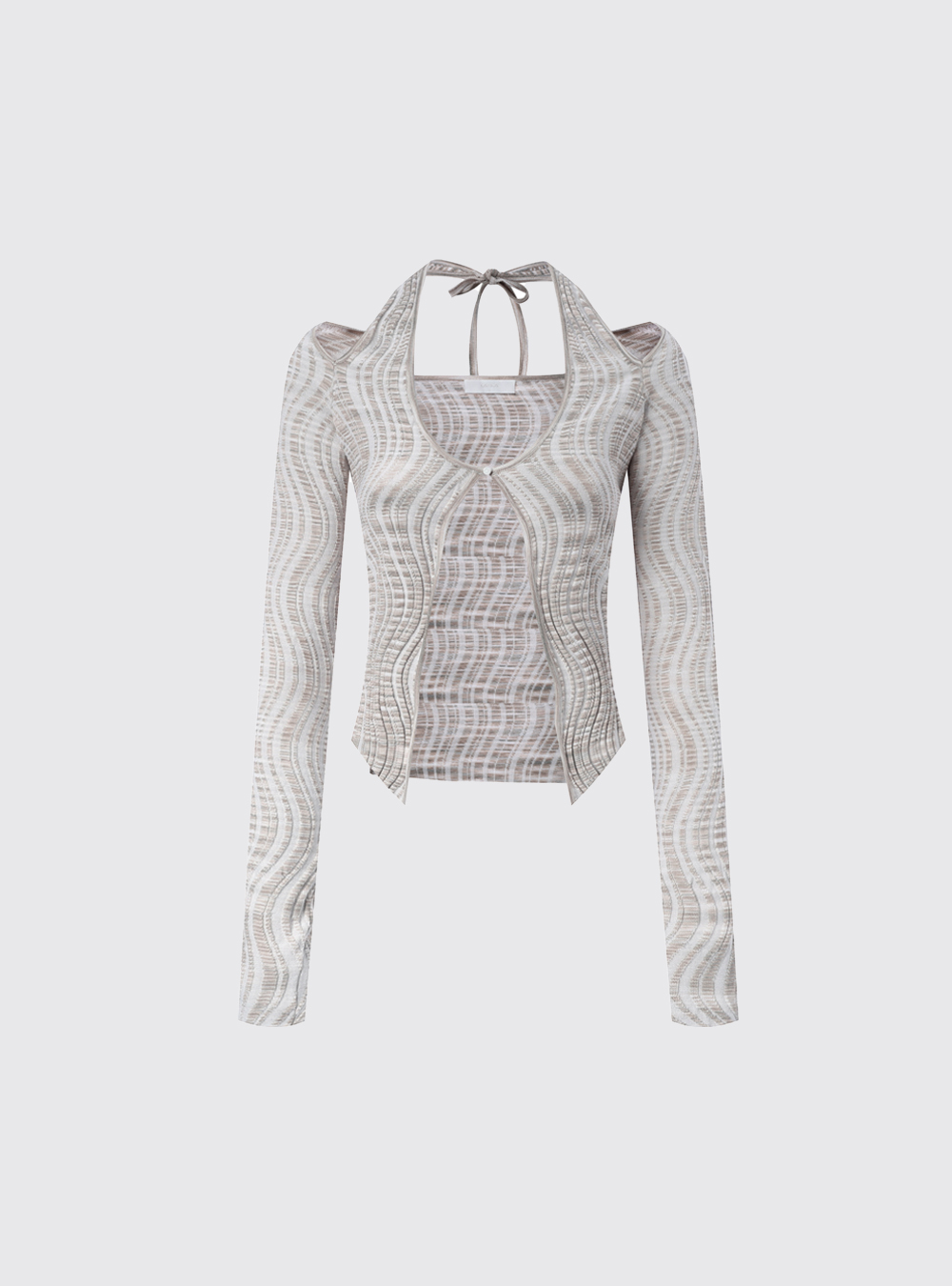 Stay cozy and chic with the Auralia Wavy Rib Halter Cardigan. Made from textured ribbed fabric with a trendy halter neck design, this cardigan adds a touch of flair to any outfit. Whether layered over a tee or styled with a dress, it’s the perfect piece for adding a touch of sophistication to your look.