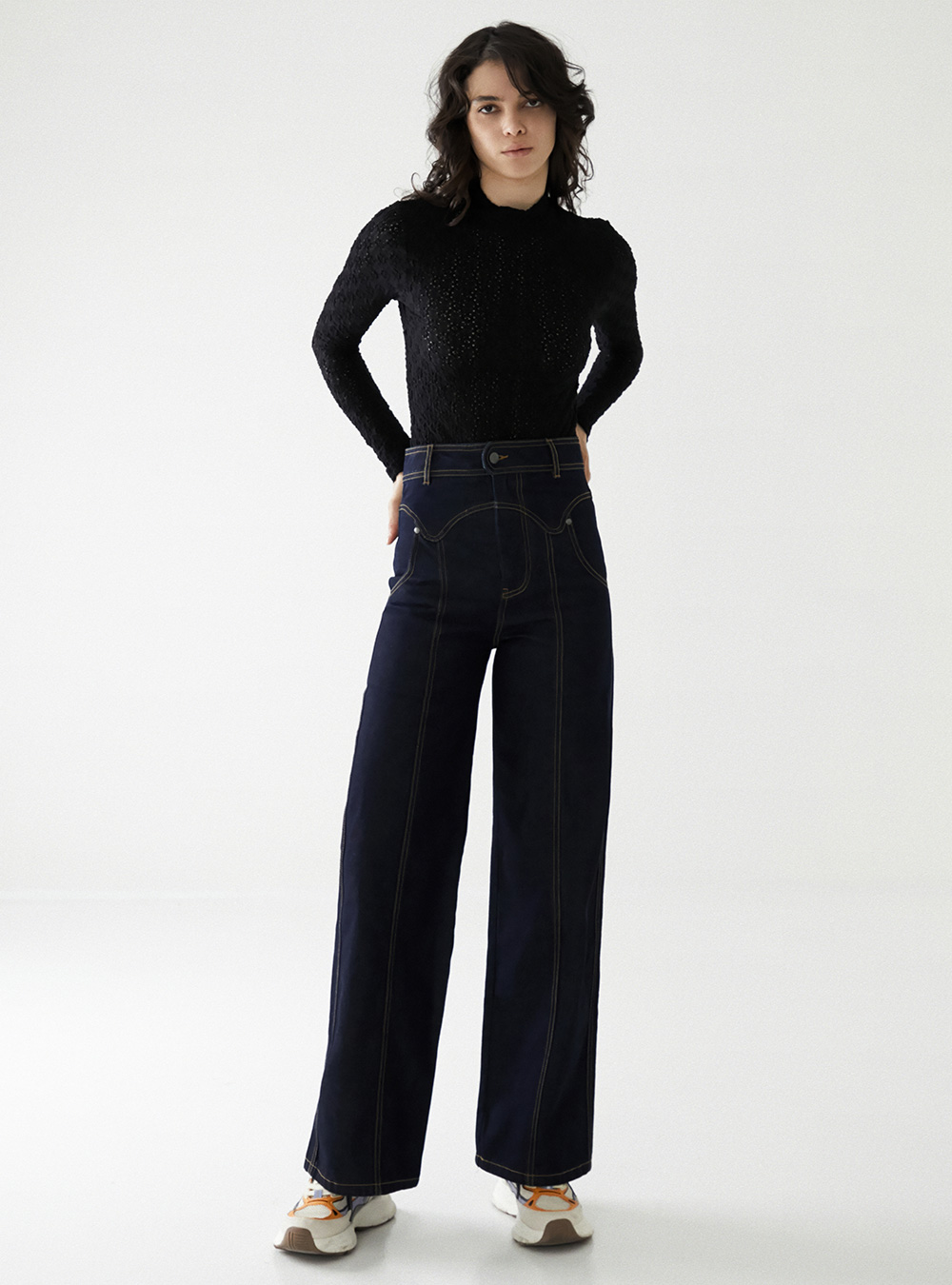 You can create a casual look by layering it with simple wide pants or a mini skirt.
