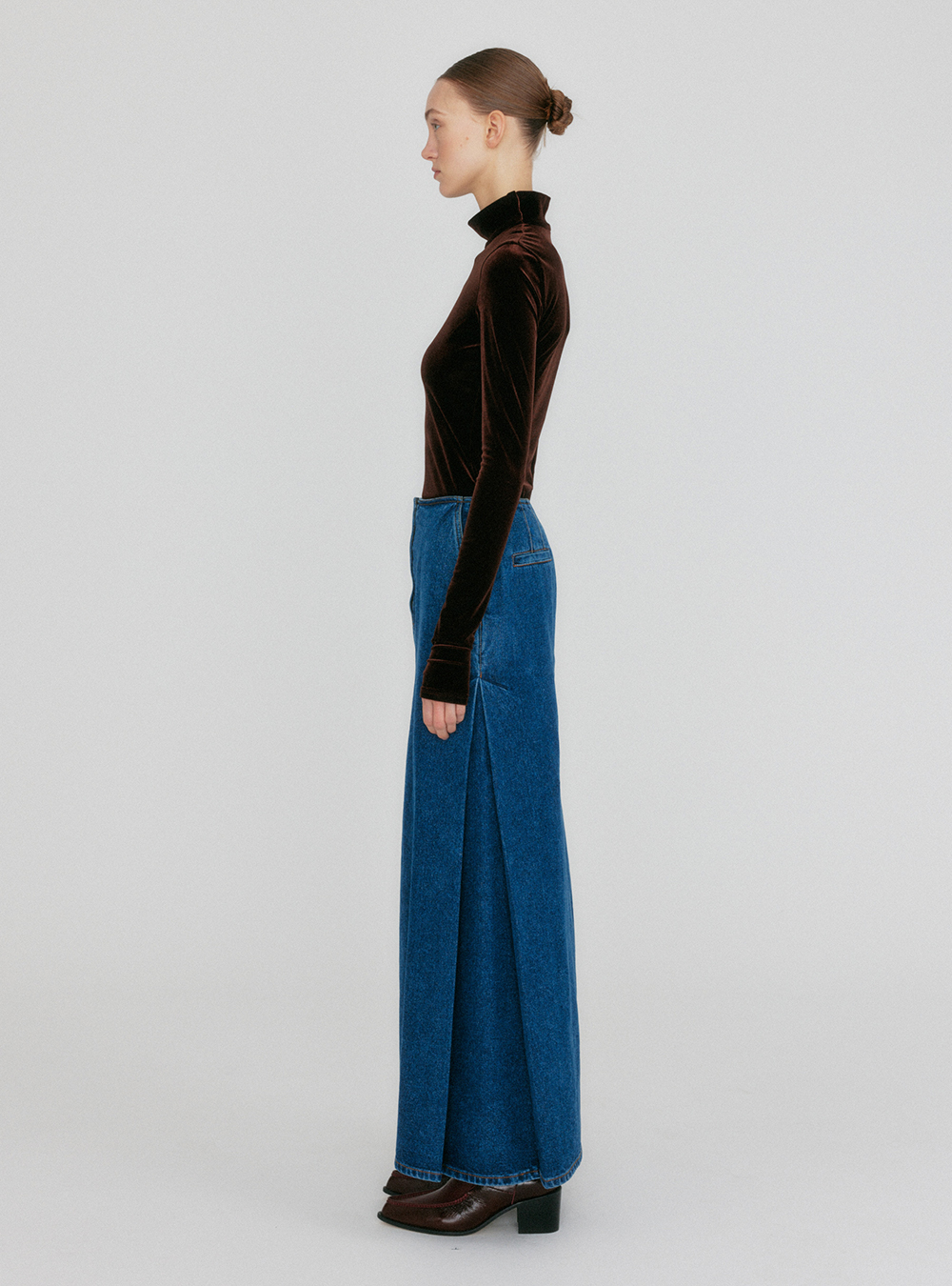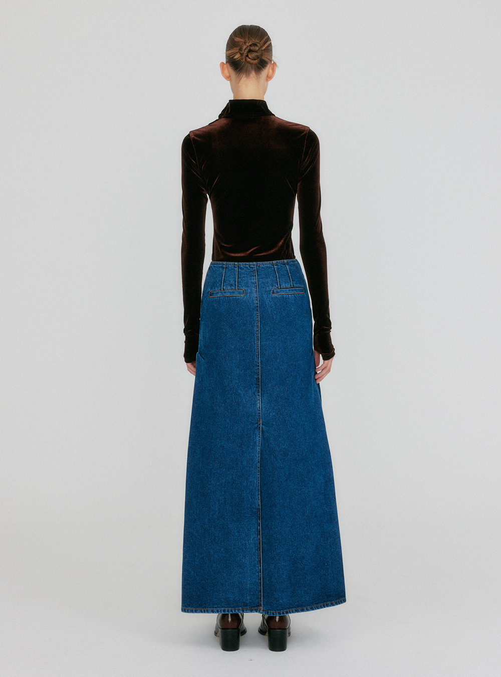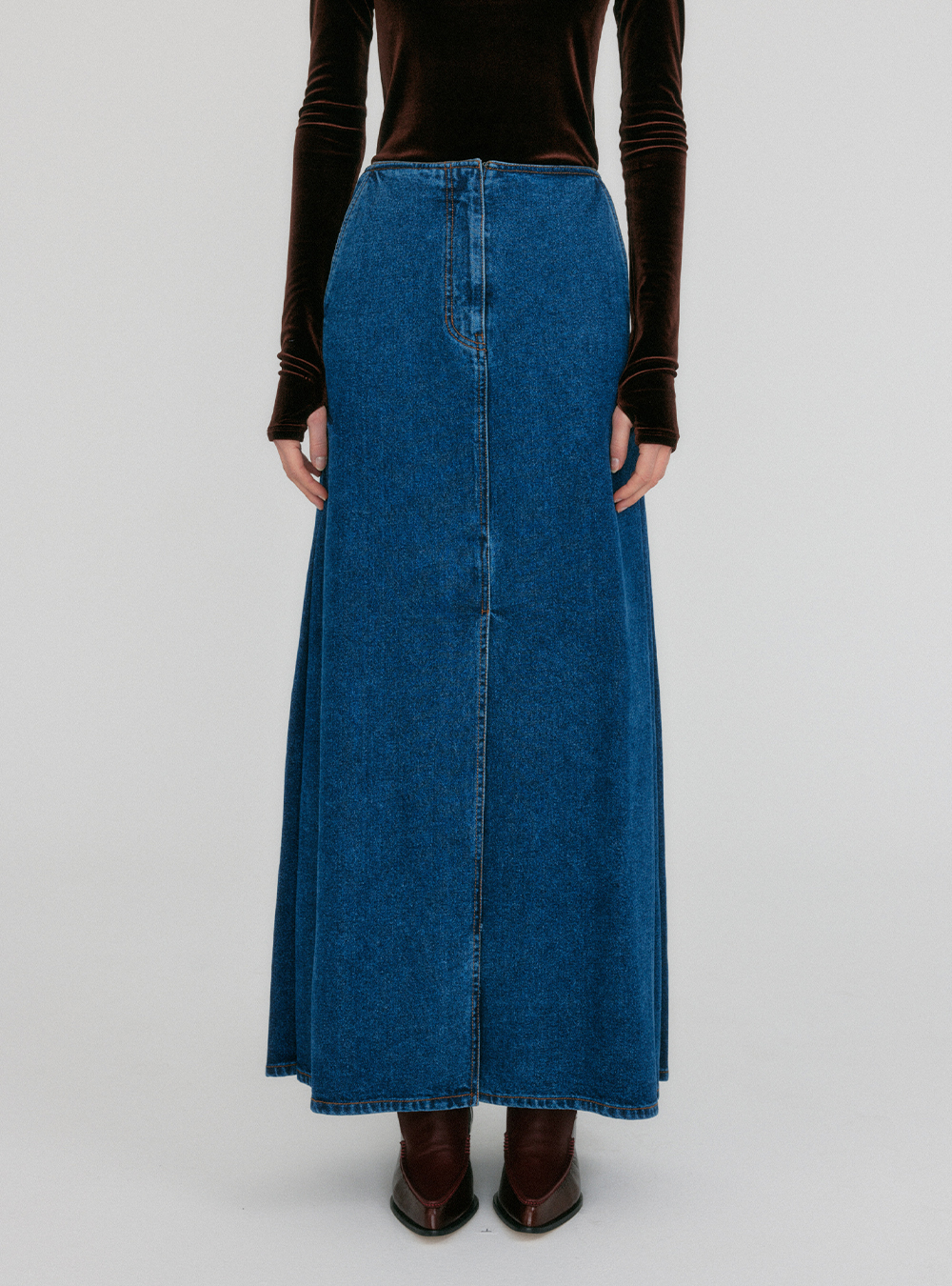 The Belted Straight Denim Skirt merges classic style with contemporary flair, featuring a chic belt that accentuates the waist for a polished look.