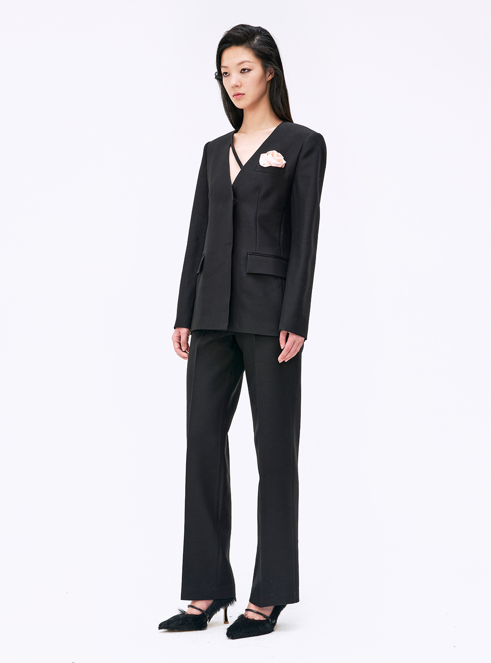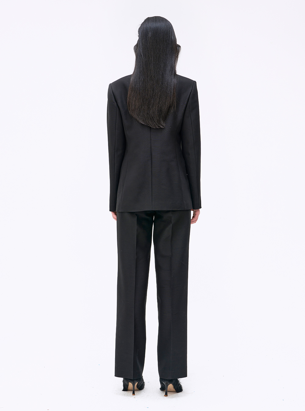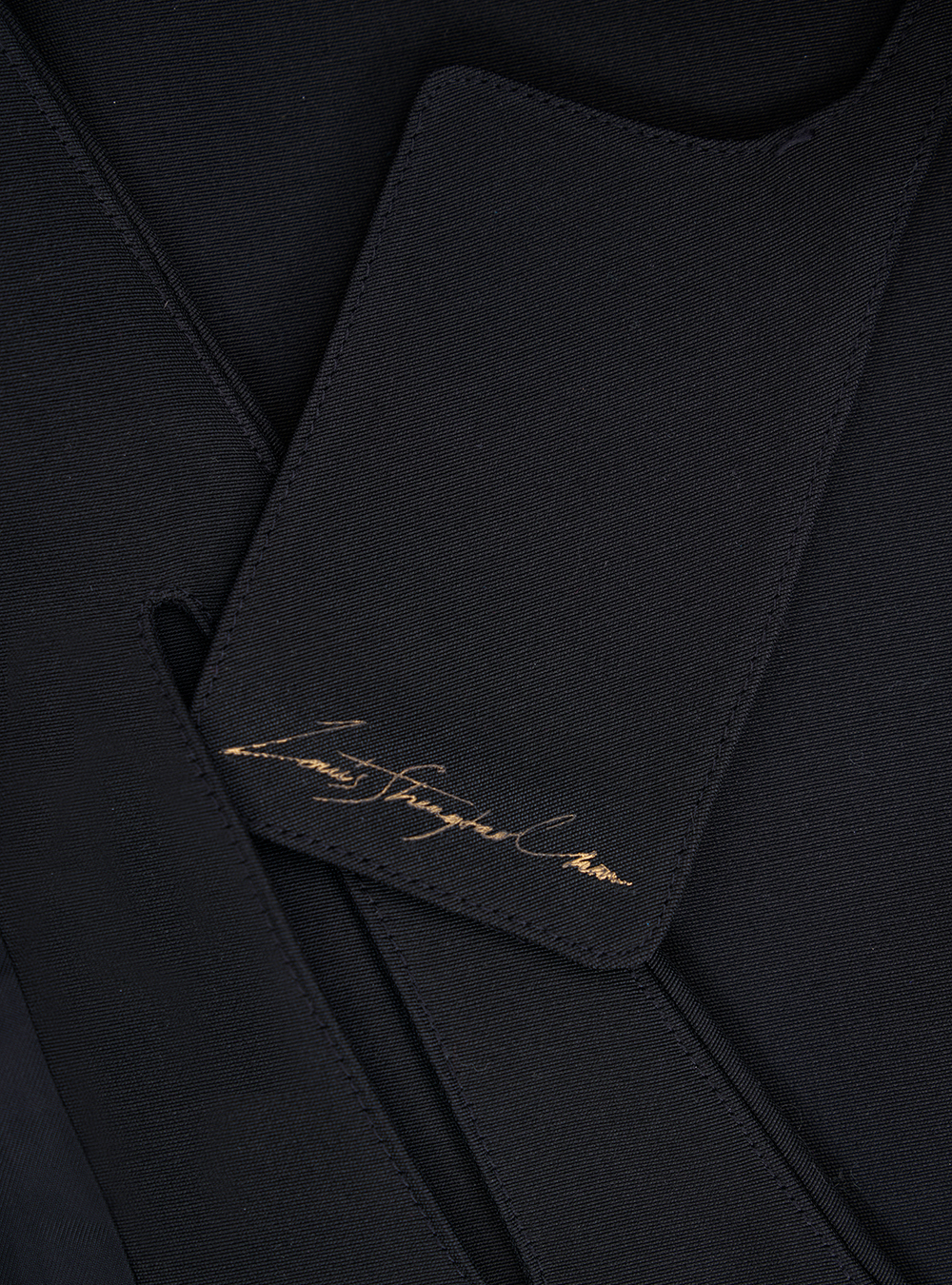 The Black Silk Wool Pigeonic Jacket is a luxurious outerwear piece, crafted from a blend of silk and wool for a rich texture and elegant drape. Its pigeonic design adds a contemporary edge to this timeless jacket.