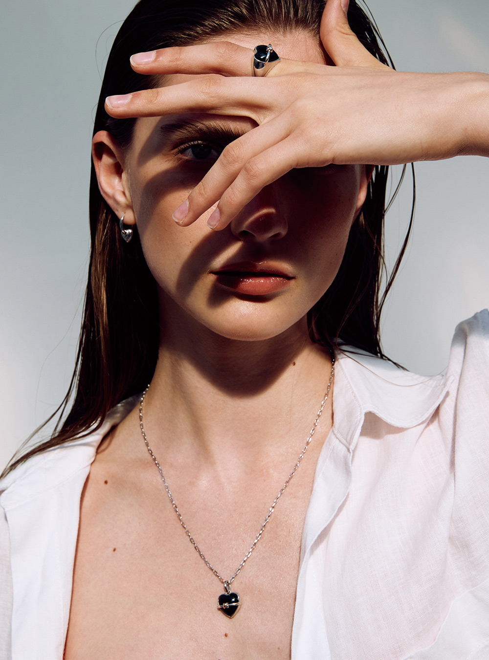 Adorned with a black synthetic Onyx heart-shaped pendant, this necklace is perfect for complementing a variety of looks.