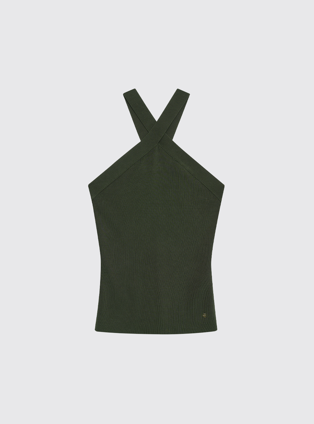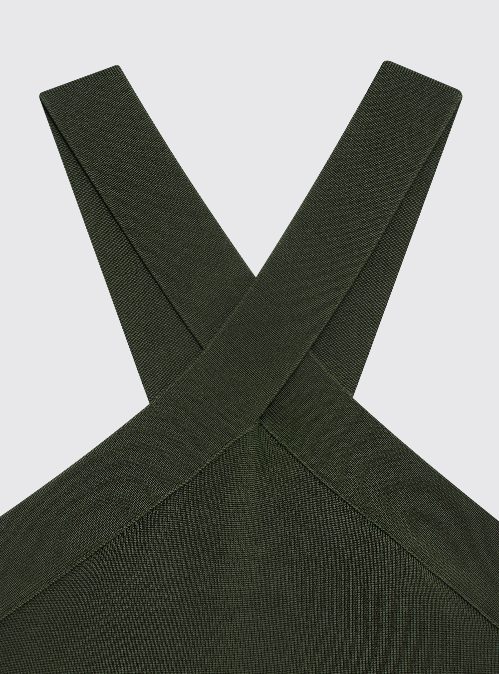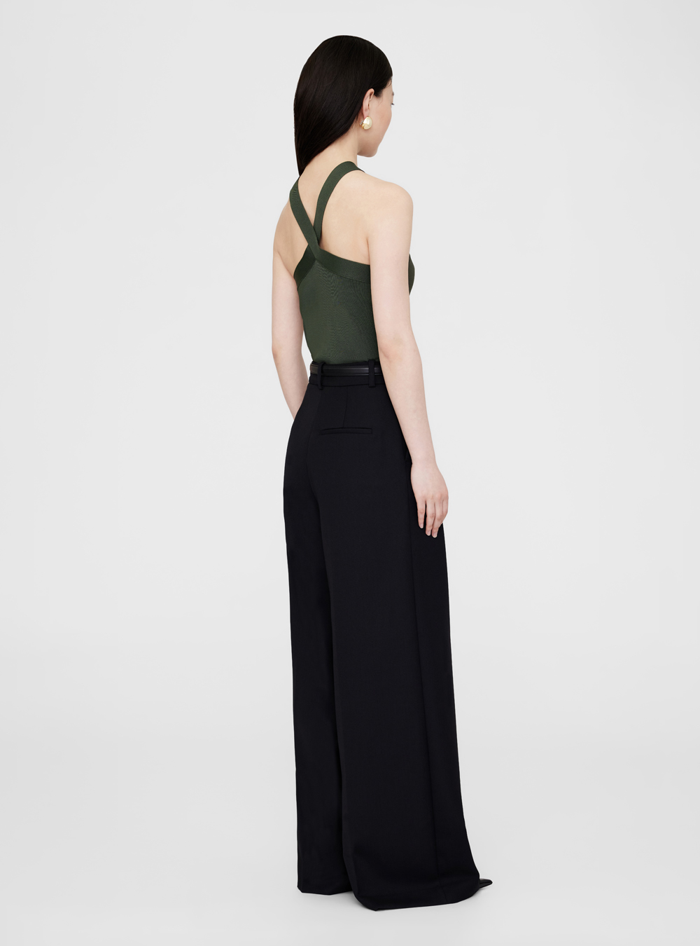 The Brea Top is a fully fashioned knit made from a midweight viscose fabrication with a slight sheen. Its slim-fitting silhouette features a flattering, crisscross neckline with fine side-seam detailing.