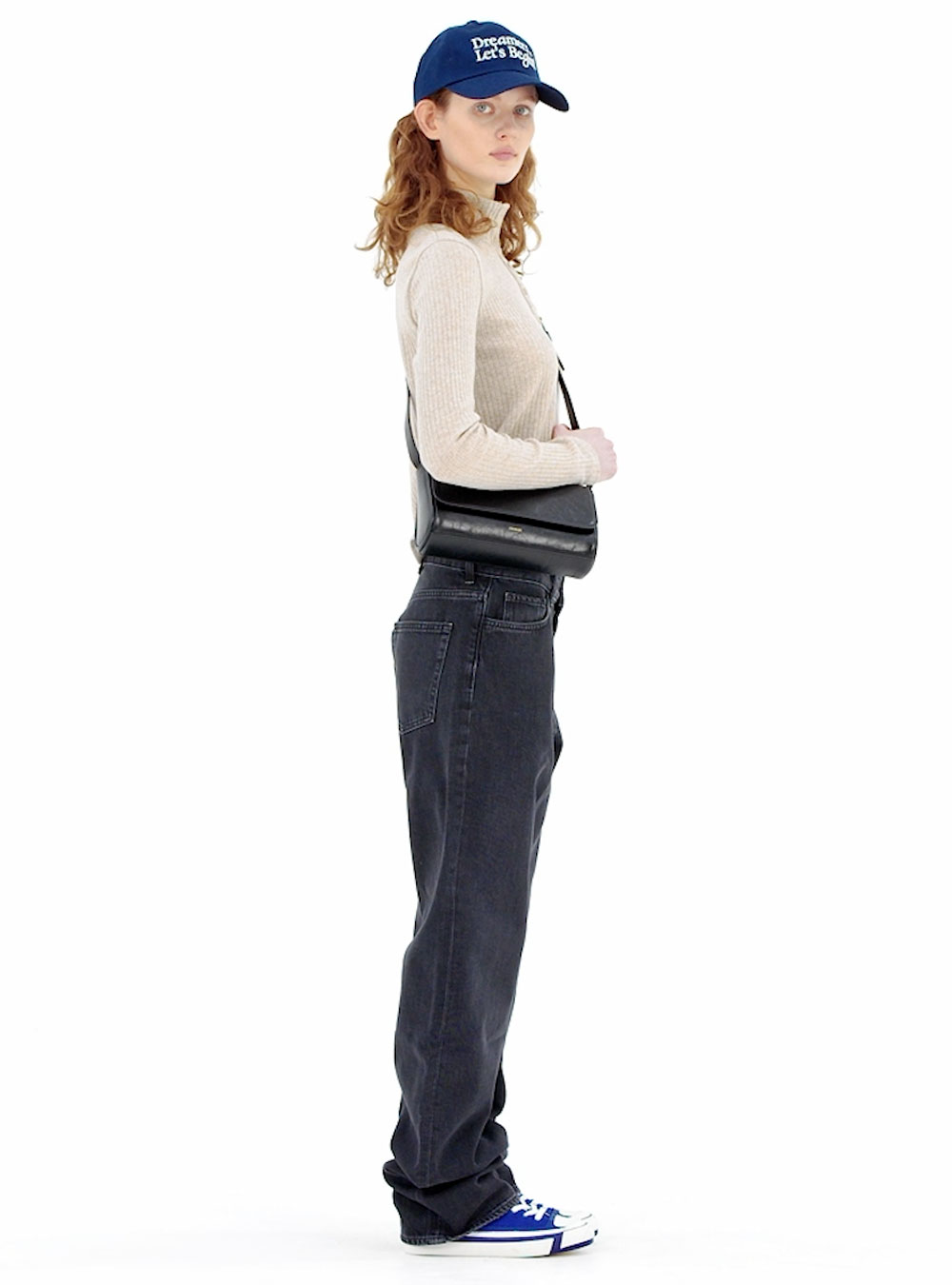 A long baguette-shaped bag reminiscent of a stick of butter, designed with a straight top and curved bottoms for added appeal.