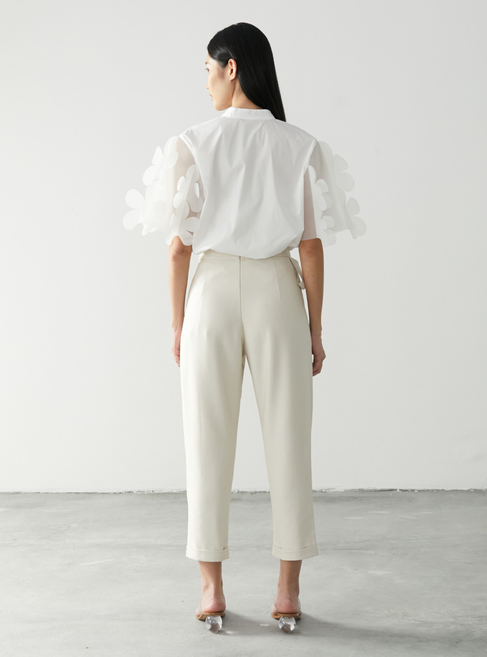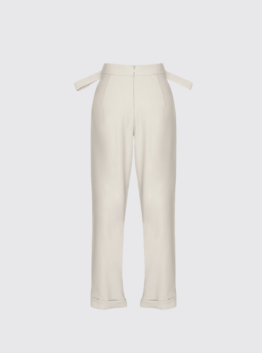 The Cadeau Pants offer a refined approach to versatile dressing, seamlessly suited for both everyday elegance and special occasions. With a high-waisted, straight tapered silhouette and an understated belt-tie detail, they exude a timeless sophistication.