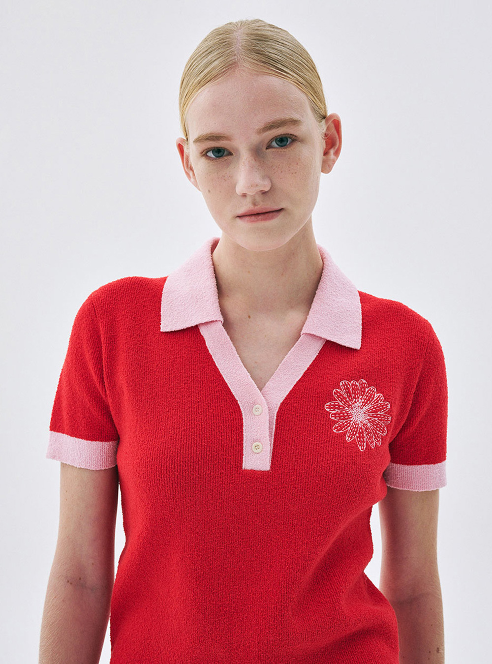 Home » Shop » Cotton Knit Top Color Contrast in Red
