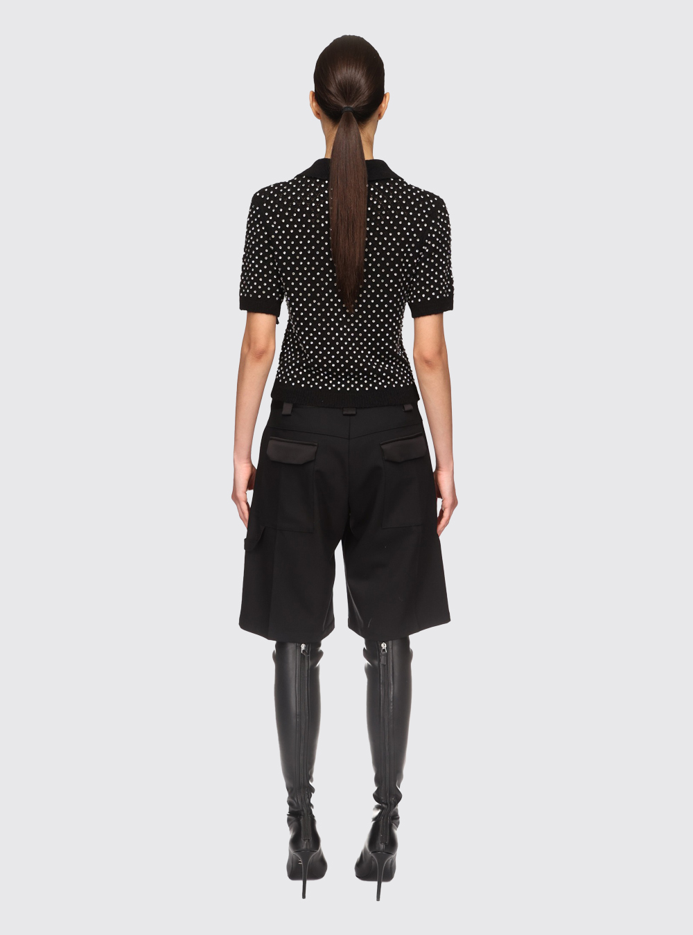 Stay cozy and stylish with the Crystal Embroidered Knit Polo Neck Mohair Blend Knit Top. Featuring a polo neck and crystal embroidery, the intricate detailing adds a touch of luxury to this comfortable piece, perfect for elevating your casual look.