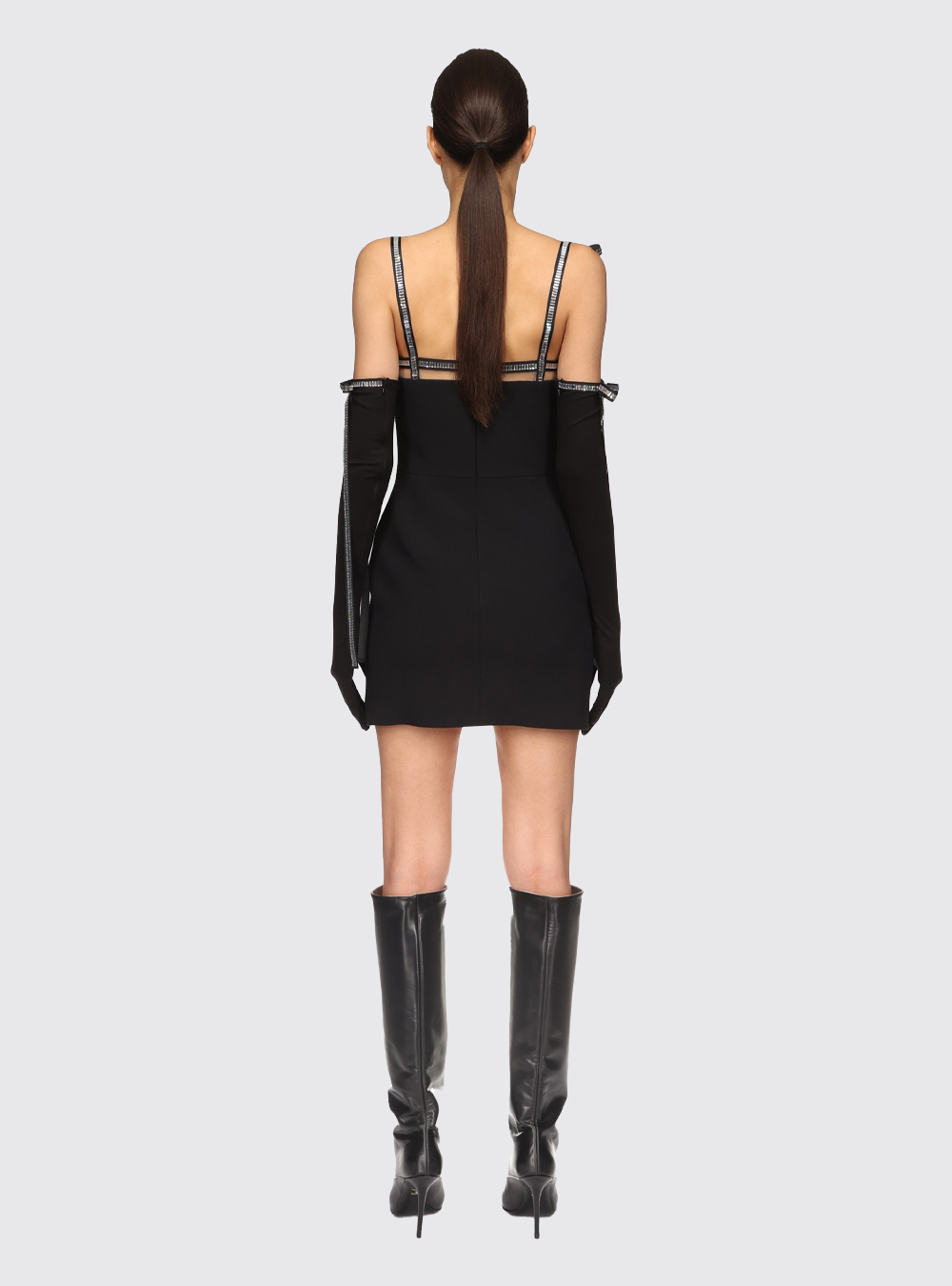 Shine in the Crystal Grosgrain Trim & Bow Strap Detail Dress, detailed with crystal grosgrain trim and bow straps. Perfect for evening events, this dress combines elegance with a hint of glamour, making it a standout piece in any wardrobe.