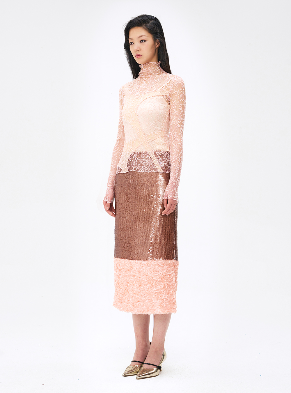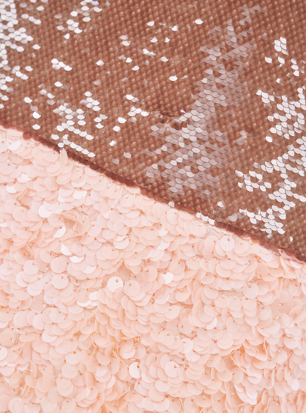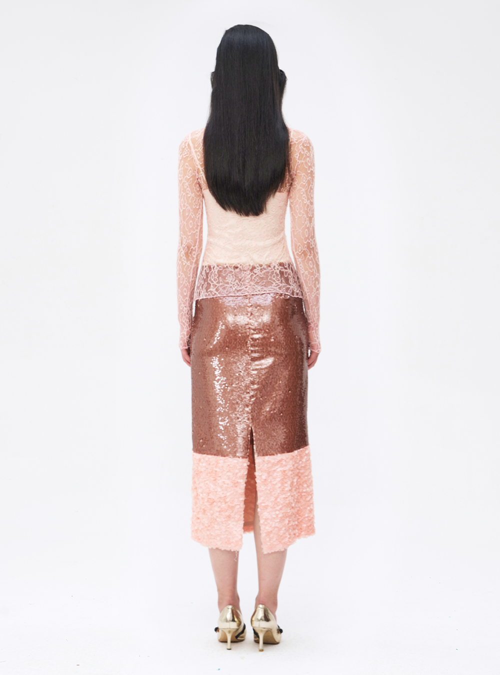 The Dahlia Duo Sequins Midi Skirt is a dazzling piece, adorned with shimmering sequins that catch the light beautifully. Its midi length and elegant design make it perfect for special occasions.