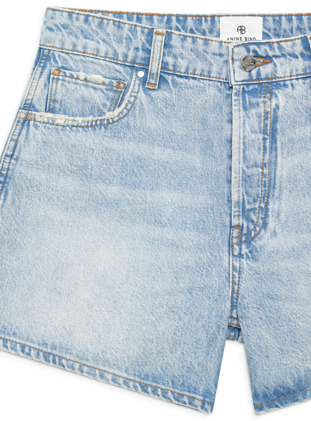 The Dalton Short is made from lightweight 100% cotton rigid denim in a bleached blue wash. Its high-waisted, low-on-the-hips fit offers an ultra-relaxed look. Take your true size, or size up for a slouchier fit.