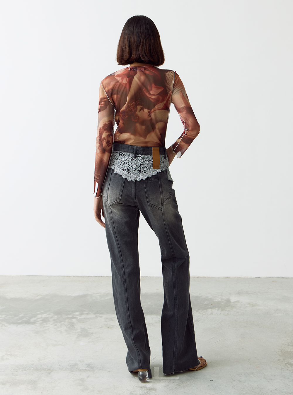 The Denim Pants With Lace in Ashed Grey are crafted from premium denim, featuring delicate lace detailing for an effortlessly chic look. Perfectly balancing edgy and feminine, they’re your go-to for a sophisticated yet casual ensemble.