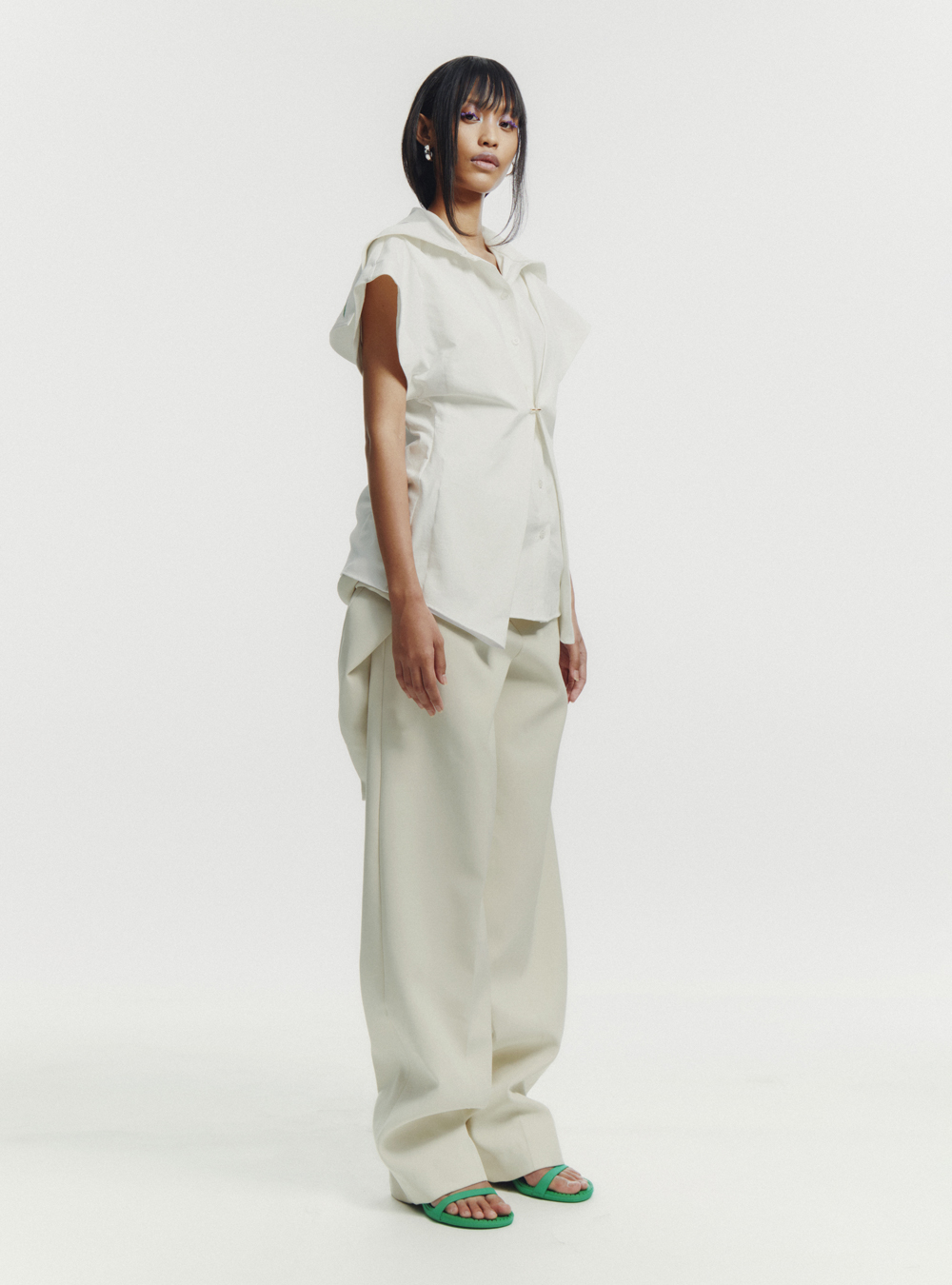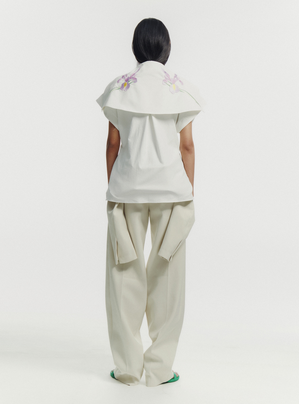 In Sean Sheila’s Fall/Winter 2023 Collection, “Rove,” Indonesian designers Sean Loh and Sheila Agatha pay tribute to self-discovery, merging traditional tailoring with modern deconstruction to present a lineup of timeless yet edgy silhouettes. With a range of materials, from crinkled linen to silk-wool blends and sustainable repurposed nylons and viscose, the collection redefines garment norms by blending masculine and feminine tailoring alongside the brand’s signature motifs, from gold embroidery to vibrant flower motifs.