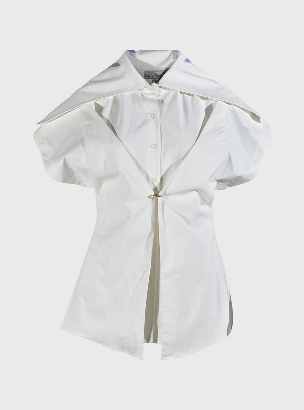 Our Double Layered Bodice Shirt with Embroidered Sailor Collar and Ring Details is a fashion-forward choice. It boasts an embroidered sailor collar and stylish ring details, making it a standout piece in your collection.