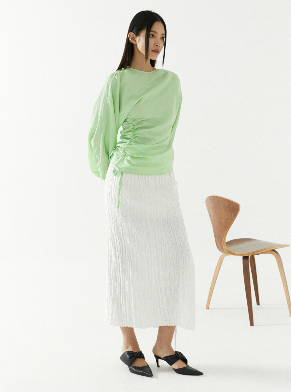 The London-based South Korean designer Rejina Pyo is known for her contemporary and feminine designs that feature unexpected details and innovative use of colour and texture. Her Spring/Summer 2023 Collection explores what love and work mean for women today, embracing their femininity, individuality and confidence, and breaking the rules, norms and expectations. Key silhouettes/details include asymmetric hemlines, sheer fabrics and a mild colour palette.