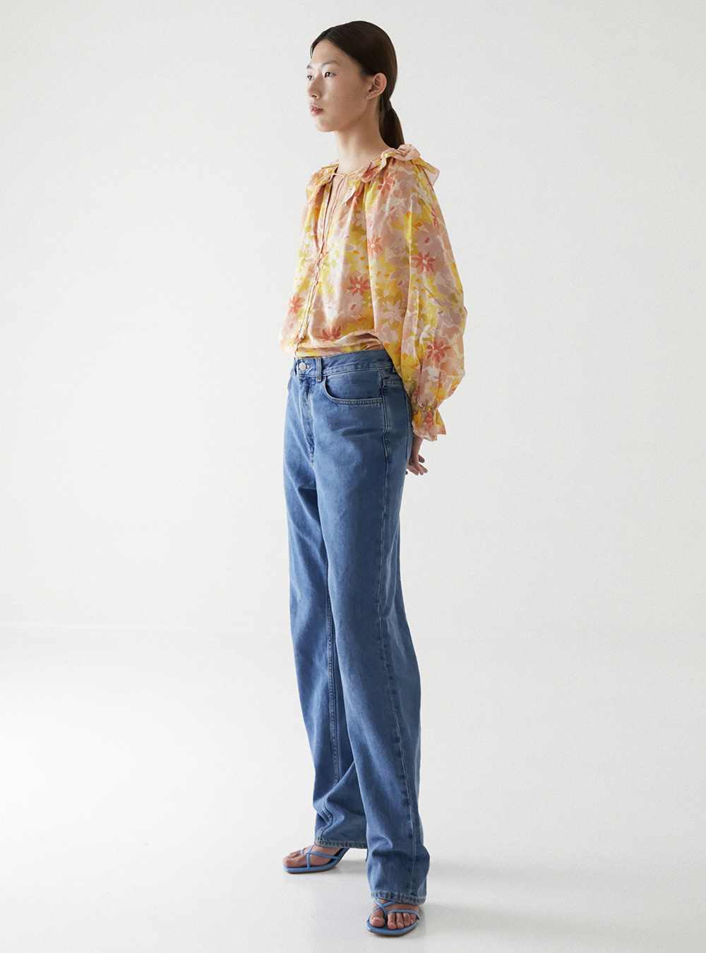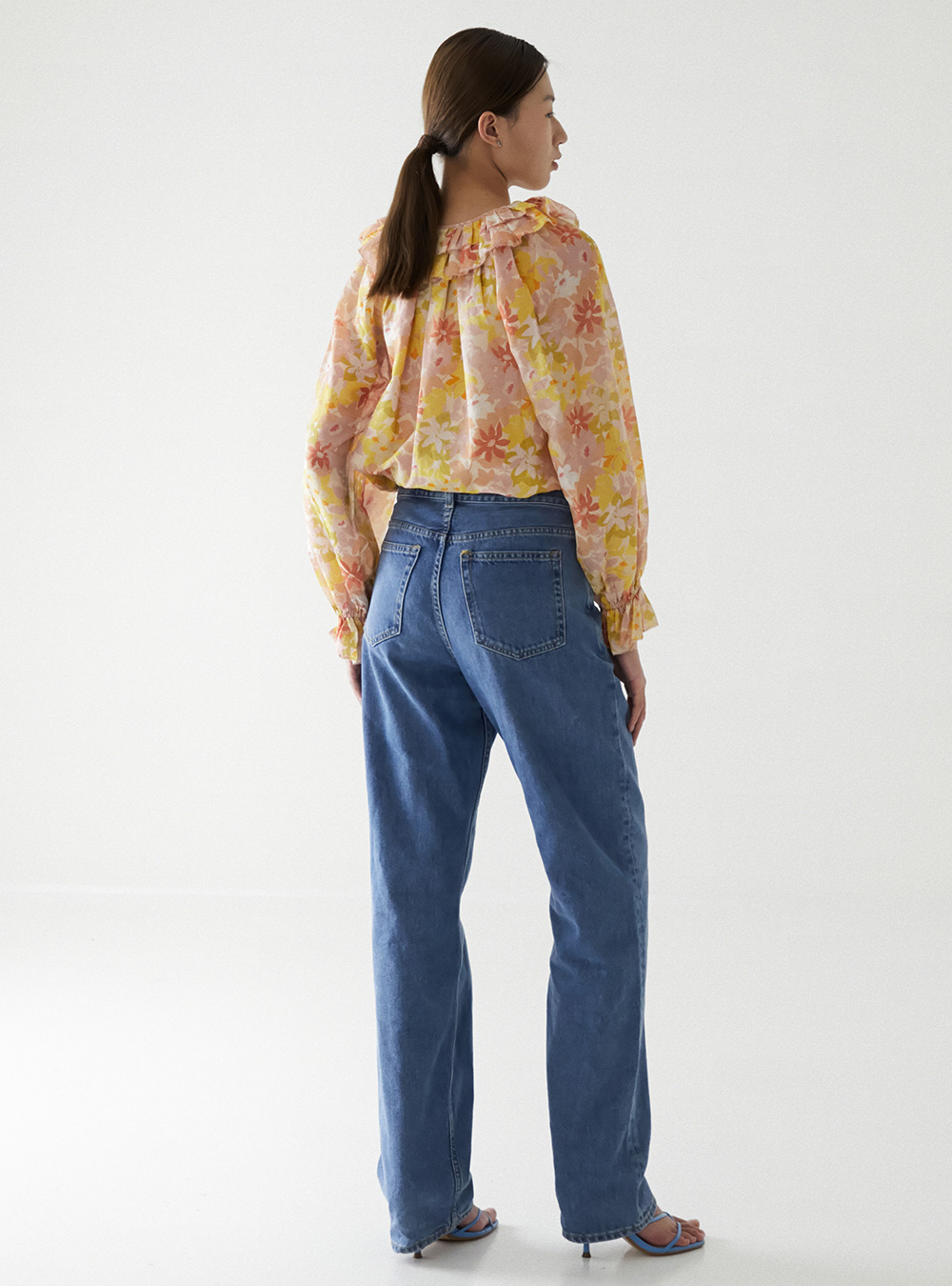 The Elainne Shirt is crafted from a textured Silk Dobby and comes in a signature print. This key Magali Pascal style is designed with a flattering V-neck, ruffle details and a front button down. The shirt is designed to have an oversized look, so if you are between sizes we recommend sizing down.
