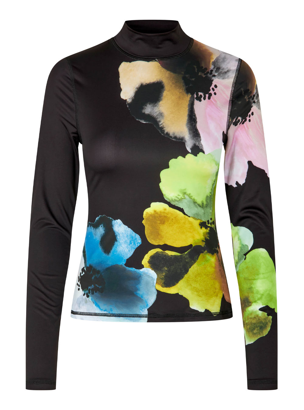 Stretchy slim fit top with turtleneck, long sleeves and all-over floral print. Cut from a lightweight jersey material.