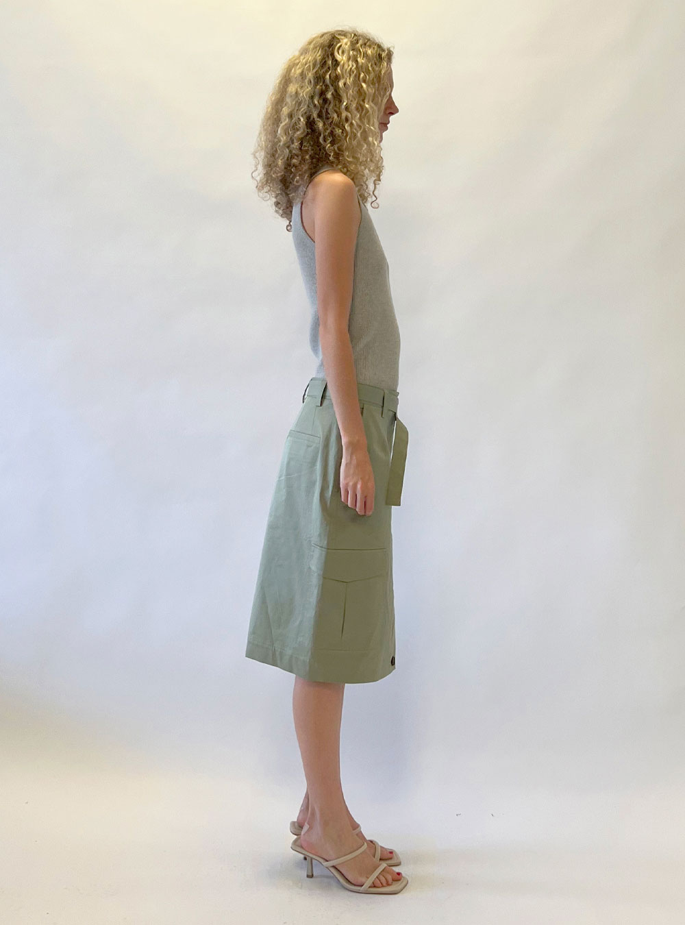 The Elliot skirt takes inspiration from 90s utility style with a knee-length cut and functional details. Featuring practical pockets and a structured fit, this skirt combines modern practicality with vintage appeal. Its clean, contemporary silhouette makes it a versatile piece.