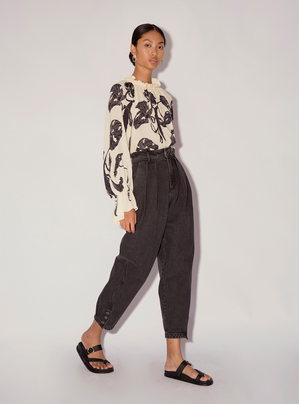 When it comes to creating a timeless wardrobe staple, Emmeline Jeans have you covered. Rock the classic boyfriend silhouette with their charcoal denim, complete with a high waist to ensure you look good. Wear yours with a white T-shirt and a pair of sneakers.