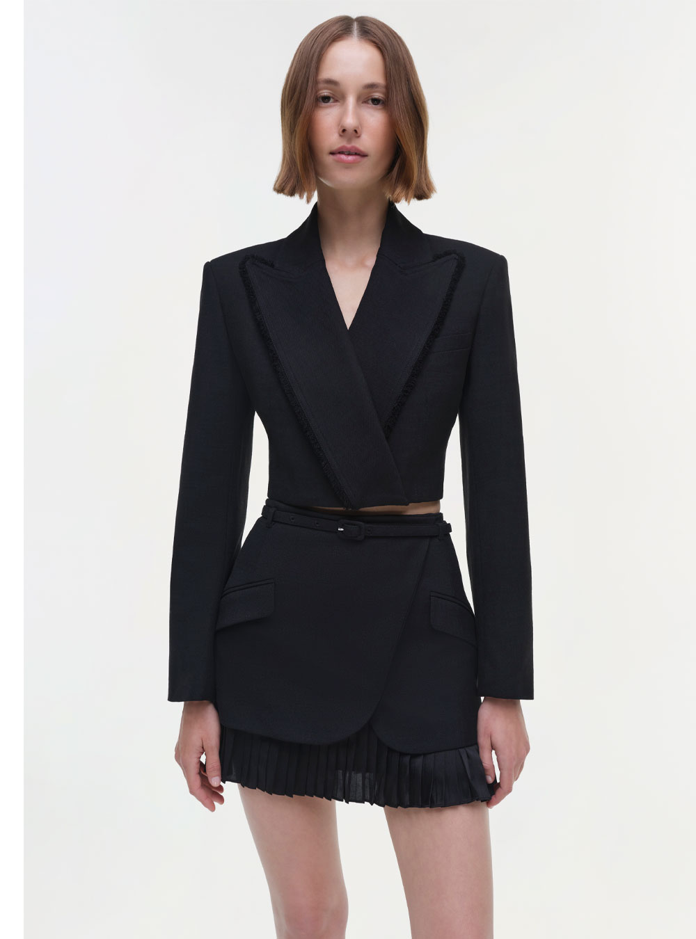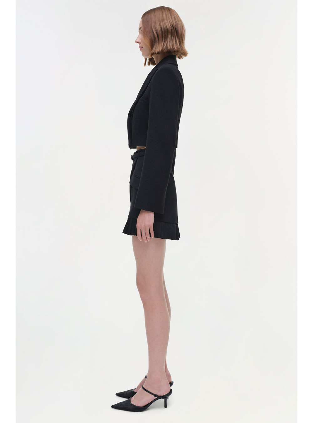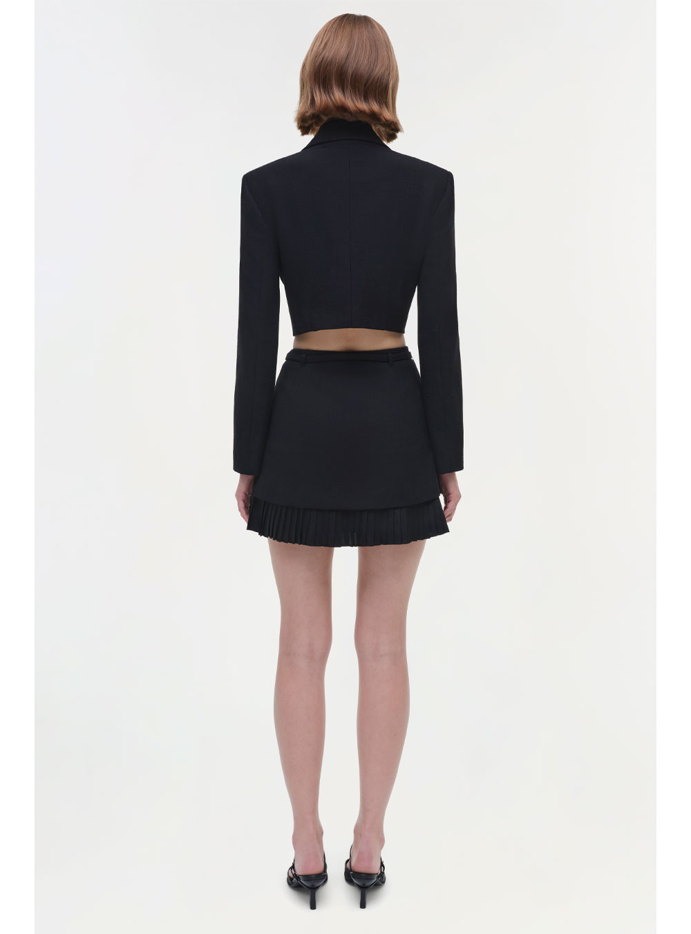 The Ezrah Skirt in Black. This mini brings a refined edge to any look, featuring structured details and a versatile design that effortlessly shifts from day to night.
