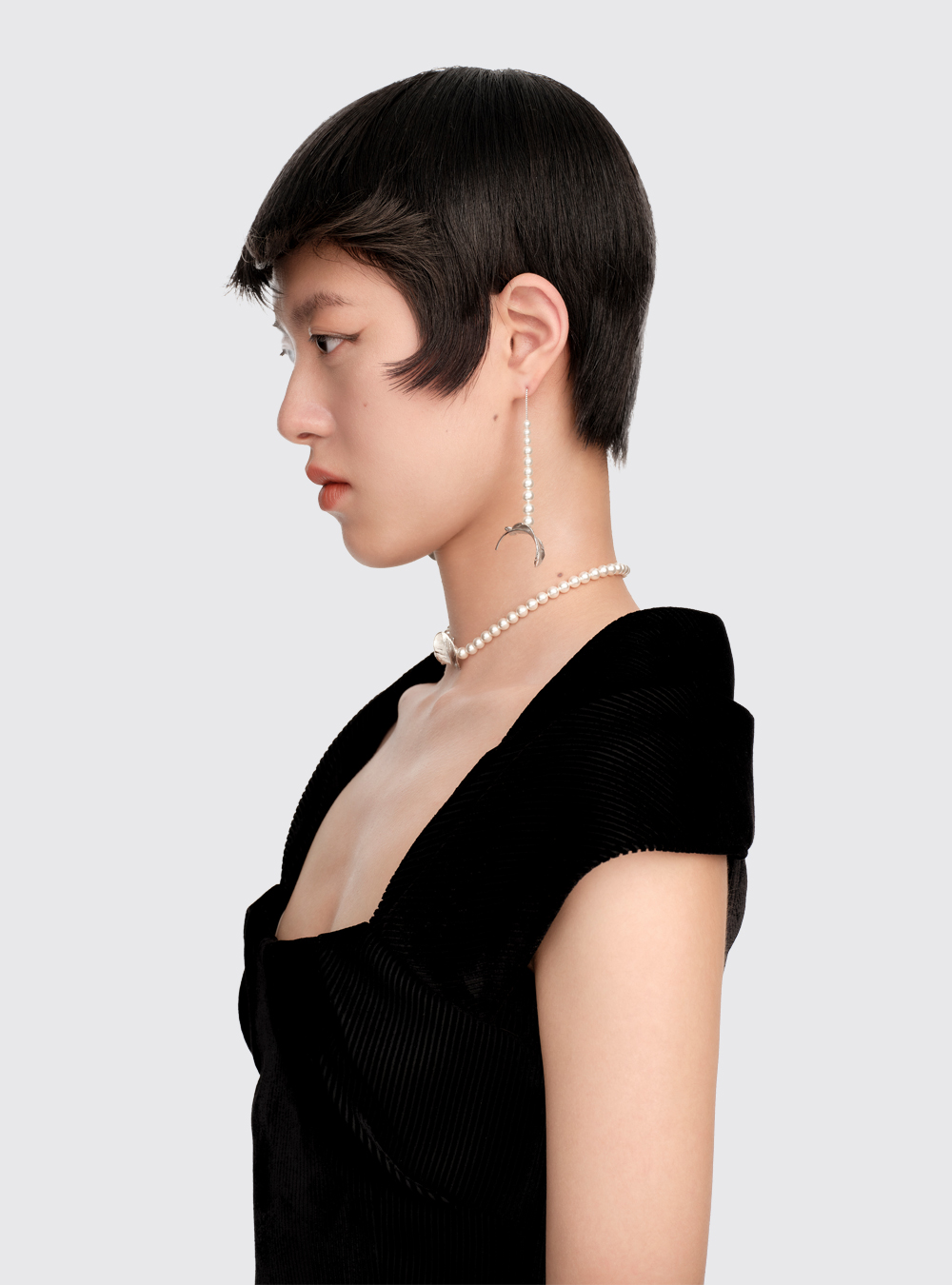 The Feather Pearl Necklace is exquisite and luxurious, crafted from 18K gold-plated silver. Showcasing a stunning shell pearl, it is perfect for adding a touch of sophistication to any look.