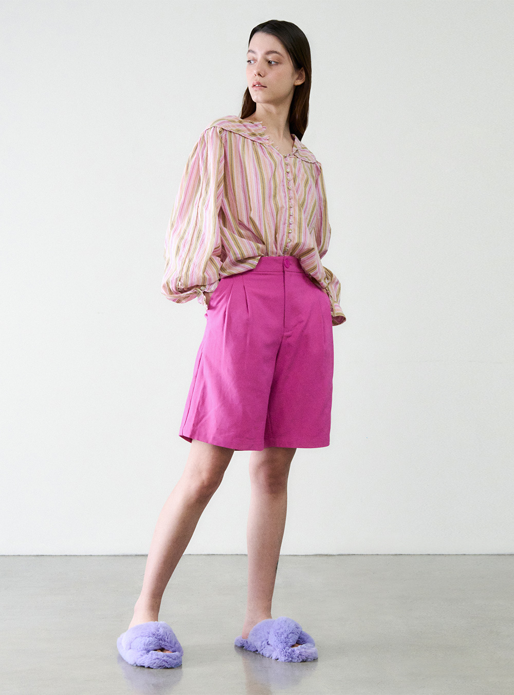 The Florentine Shorts are a Bermuda cut, designed to fall above the knee and to fit loosely. Wear high waisted or at the hips depending on the desired look, and style the shorts with the matching Florentine Blazer to create a full look.