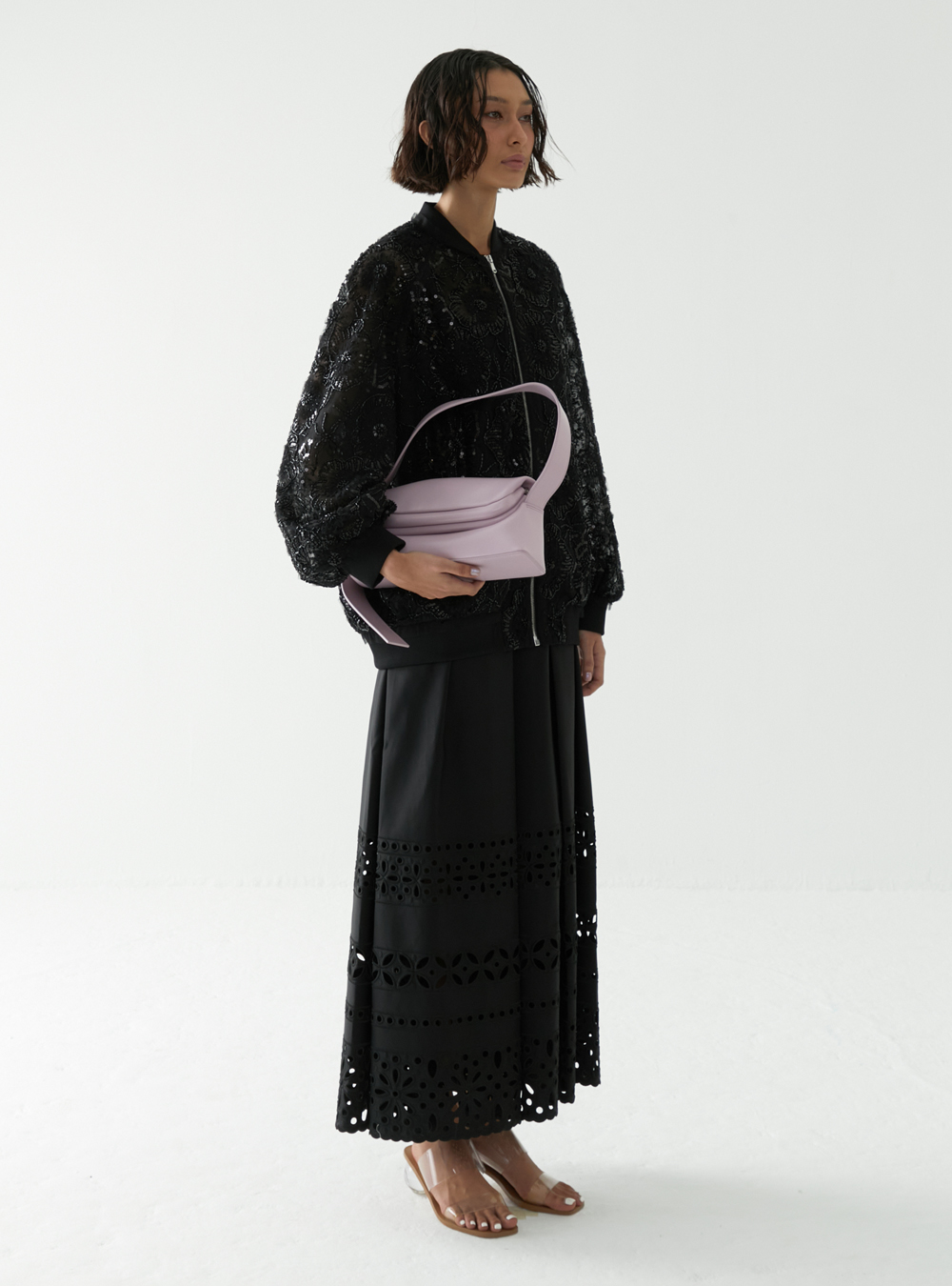 For Pre-Fall 2024, Huishan Zhang places the main character in real-life settings. Observing adulthood through an adolescent lens, the label embarks on a journey to explore and express one’s identity through their wardrobe. While the collection embodies a dramatic presence through bold, structured silhouettes, the playful embellishments and contrasting palettes of soft-washed and earthy hues create a nuanced conversation between fiction and reality, adolescence and adulthood.