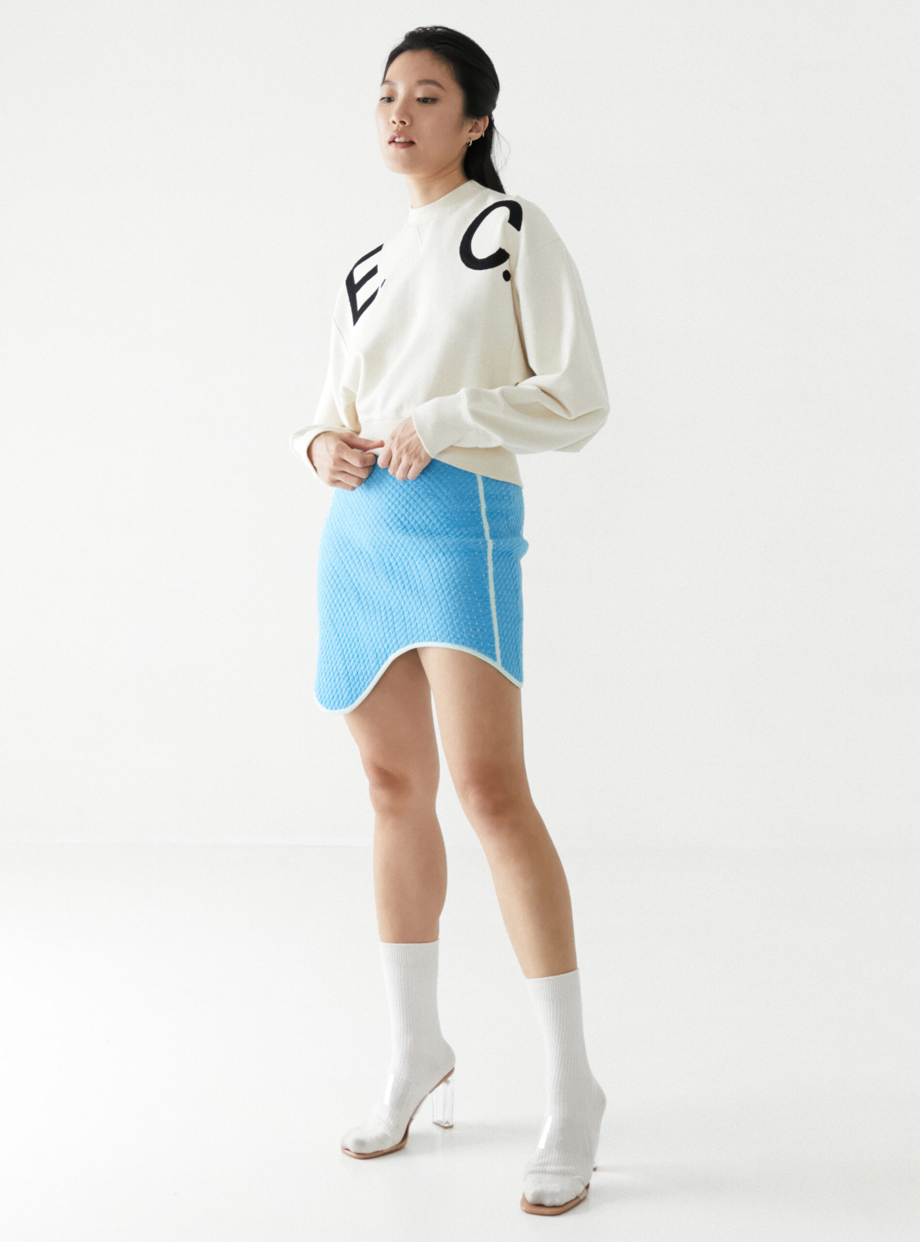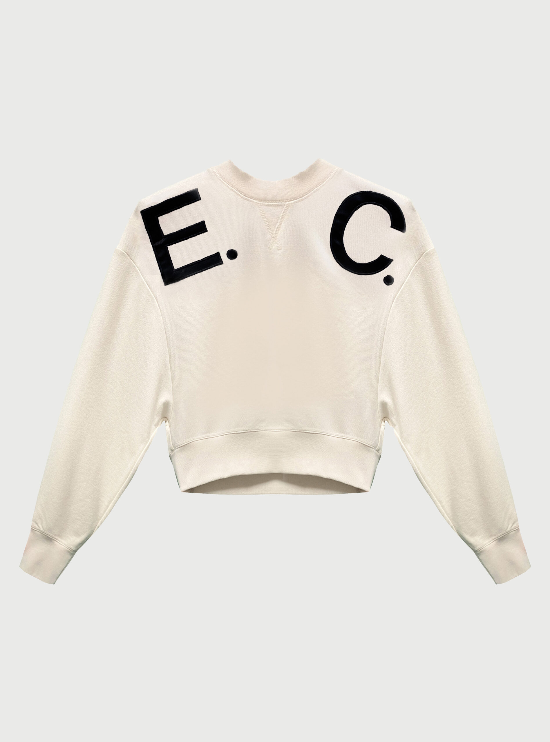 The Foix Top is a high-neck sweatshirt with a relaxed silhouette, finishes with a thick ribbed hem that hugs the waist and is accented with Eudon Choi?s typography feature embroidered on the front.