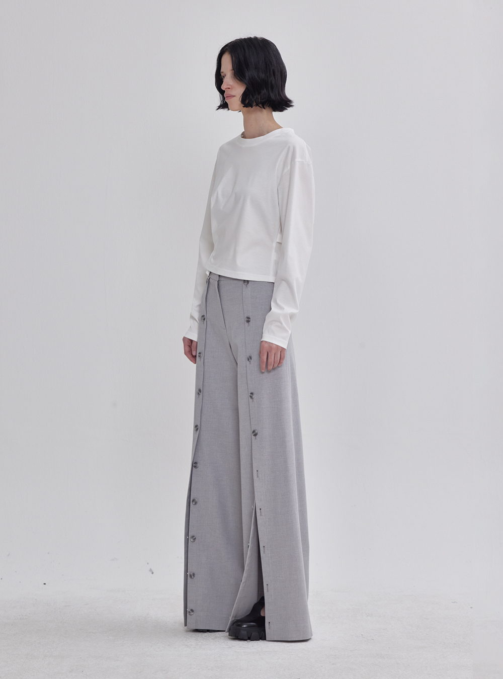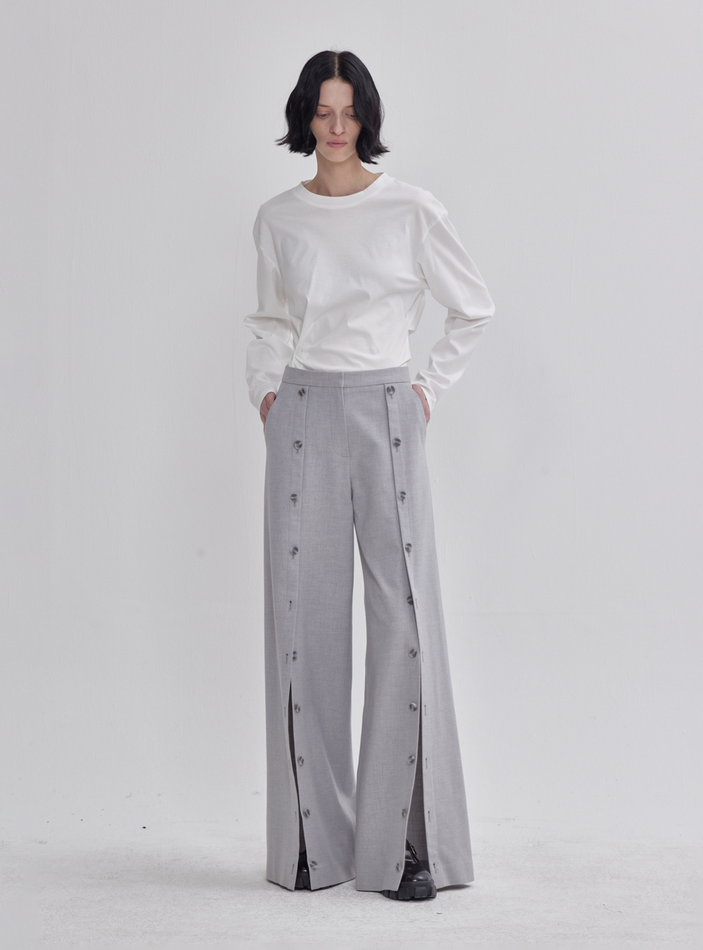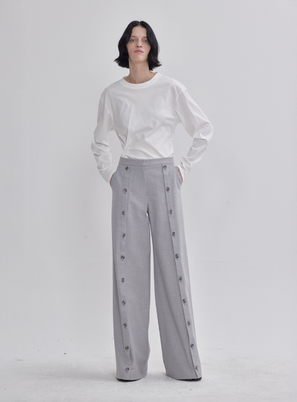Enhance your pants collection with our Front Button Detail Pants in Grey. These pants feature a unique front button detail that adds a dash of style to your outfit. The versatile grey color ensures you can pair them with a variety of tops for a chic and modern look.