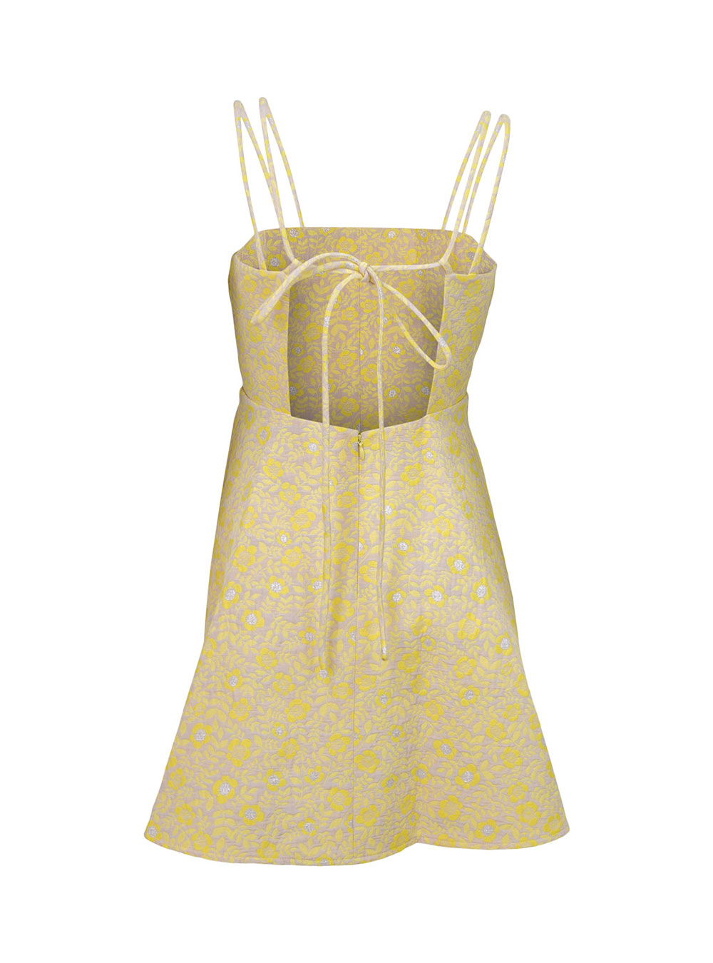 This flower jacquard mini dress gives an air of feminine confidence. Features slim shoulder straps and a fitted bodice with flare skirt. It can be take dress or top for layered style. Pair with this season’s Sheer Top in Beige.