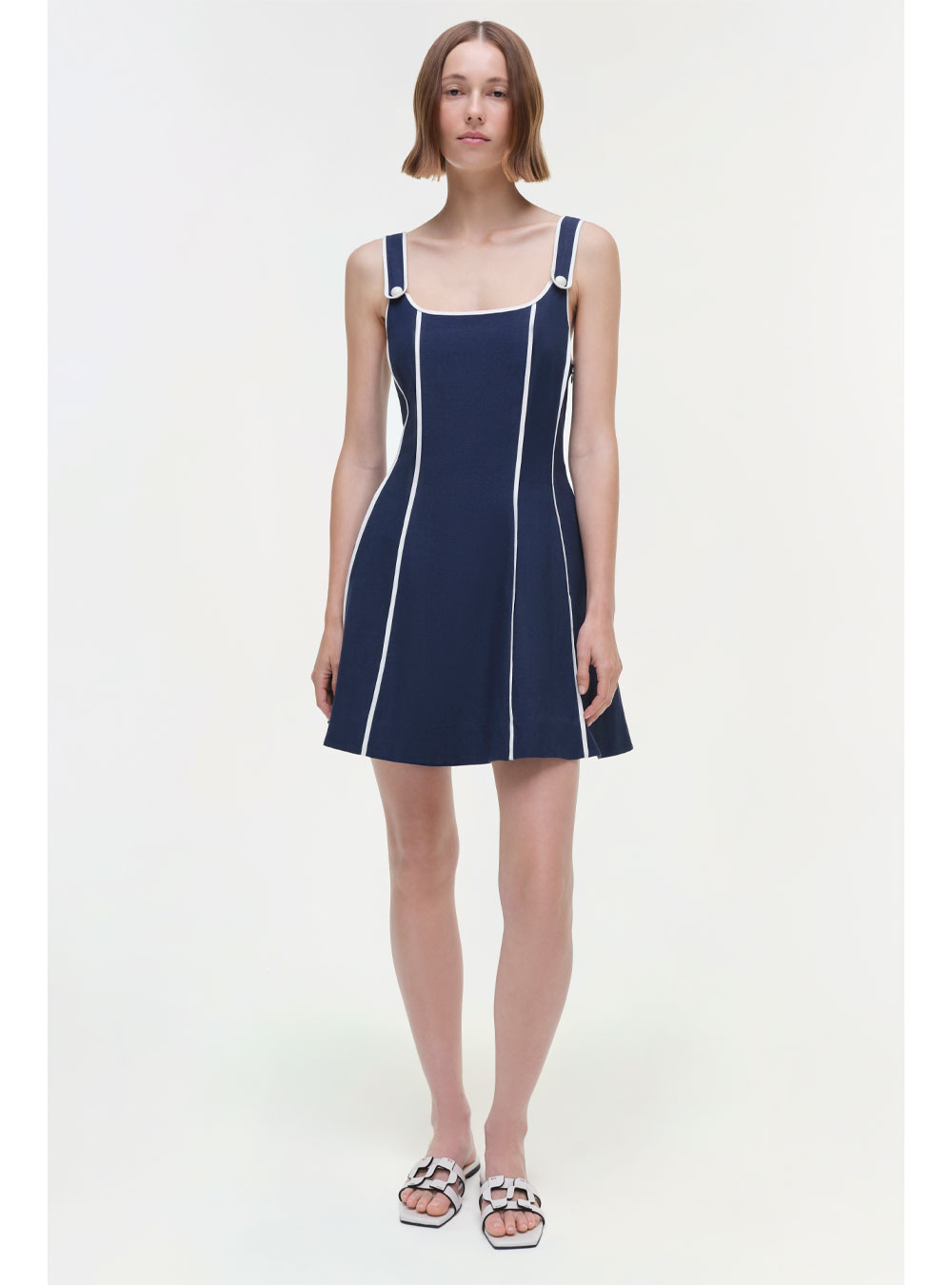 The Irie Dress in Midnight. Stay cool and stylish with this breezy linen mini dress. Designed as the perfect cover-up, it features a lightweight, airy feel and playful silhouette, making it a versatile addition to your resort wardrobe.