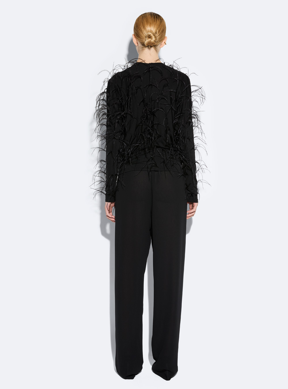 Material: 94% Acetate, 6% Elastane / Trim: 100% Dyed Ostrich Feathers