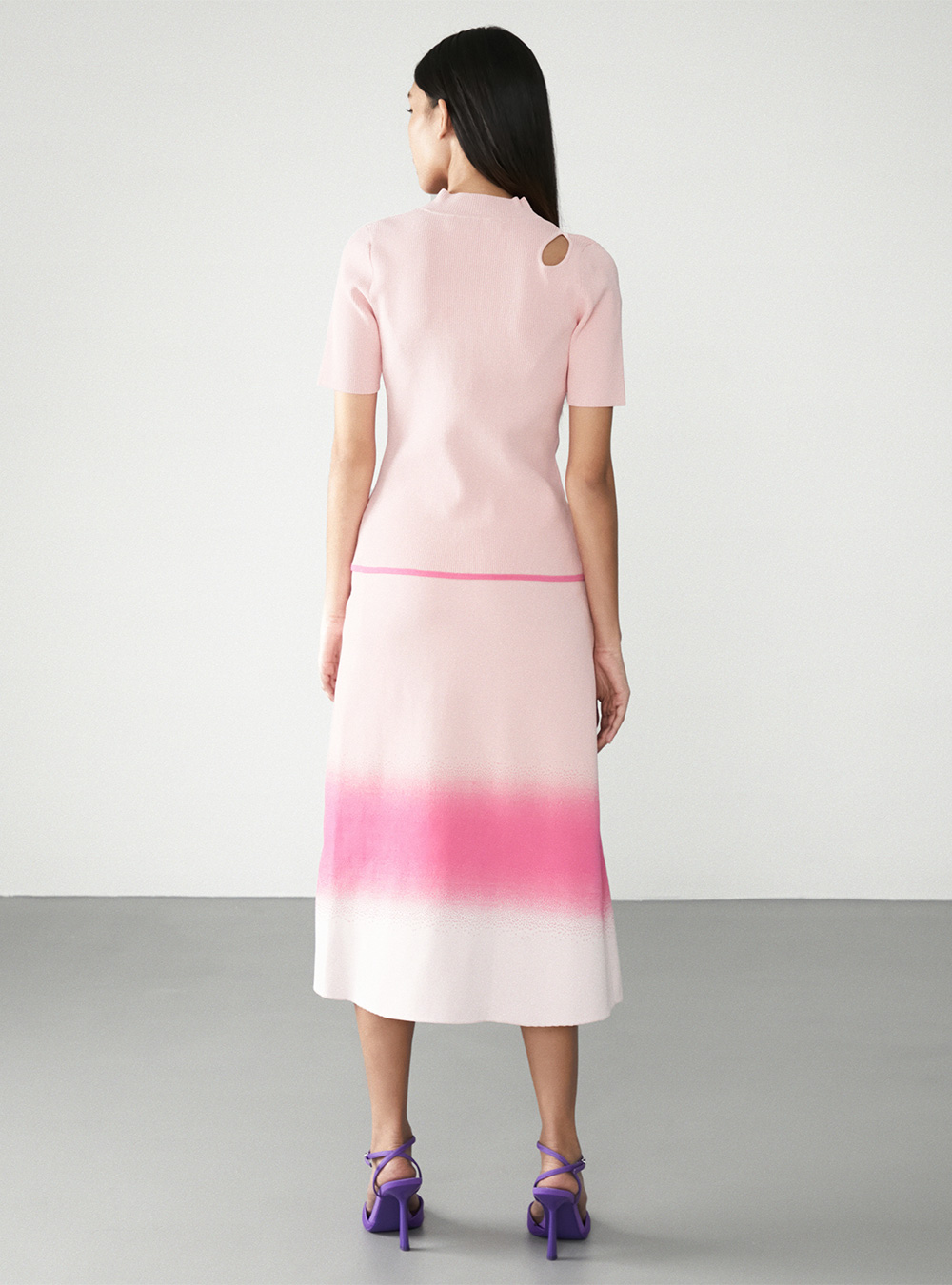 Once you have a design signature, it’s time to start thinking of how to evolve it. That’s certainly the case for Wei Lin and Zoe Champion, the designers behind PH5 and its recognizable wavy hemlines and compact knit dresses. Partly because the design process is so intensive (their bestselling Jodie dress takes 12 hours for a machine to knit because of the complexities of the waist detailing), it’s hard to imagine PH5 being successfully imitated. But that doesn’t mean Lin and Champion are able to get complacent. “Our first resort season was signature pieces in new colorways. For this resort we wanted to look at those signature pieces and what they mean to us now as a brand,” Champion says.