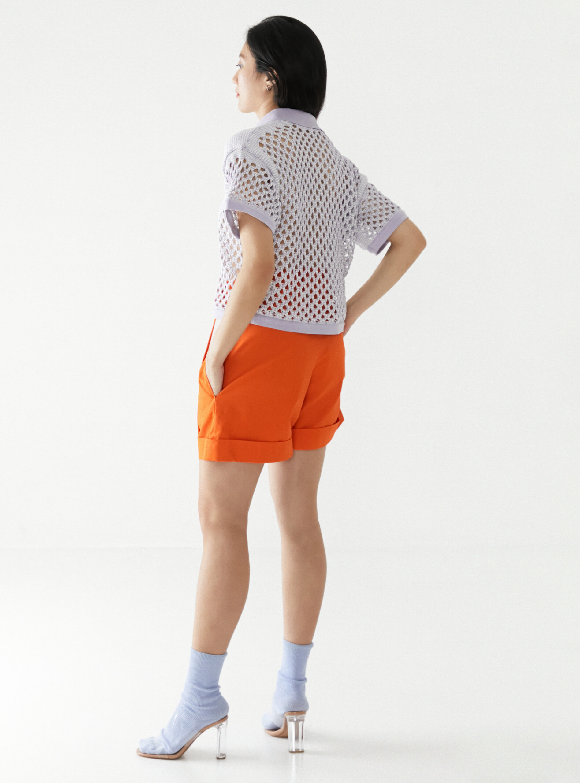 The paper-bag waist of Khushi shorts gives them a sense of effortless individuality. They are made from lightweight yet structured fabric with sharp pleats, turn-up cuffs and a statement pocket. Slip them on with a crisp shirt and coordinating jacket to mirror the season’s polished styling.