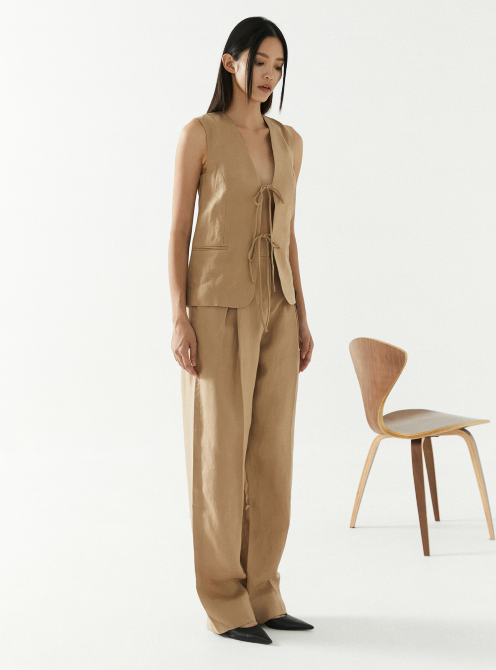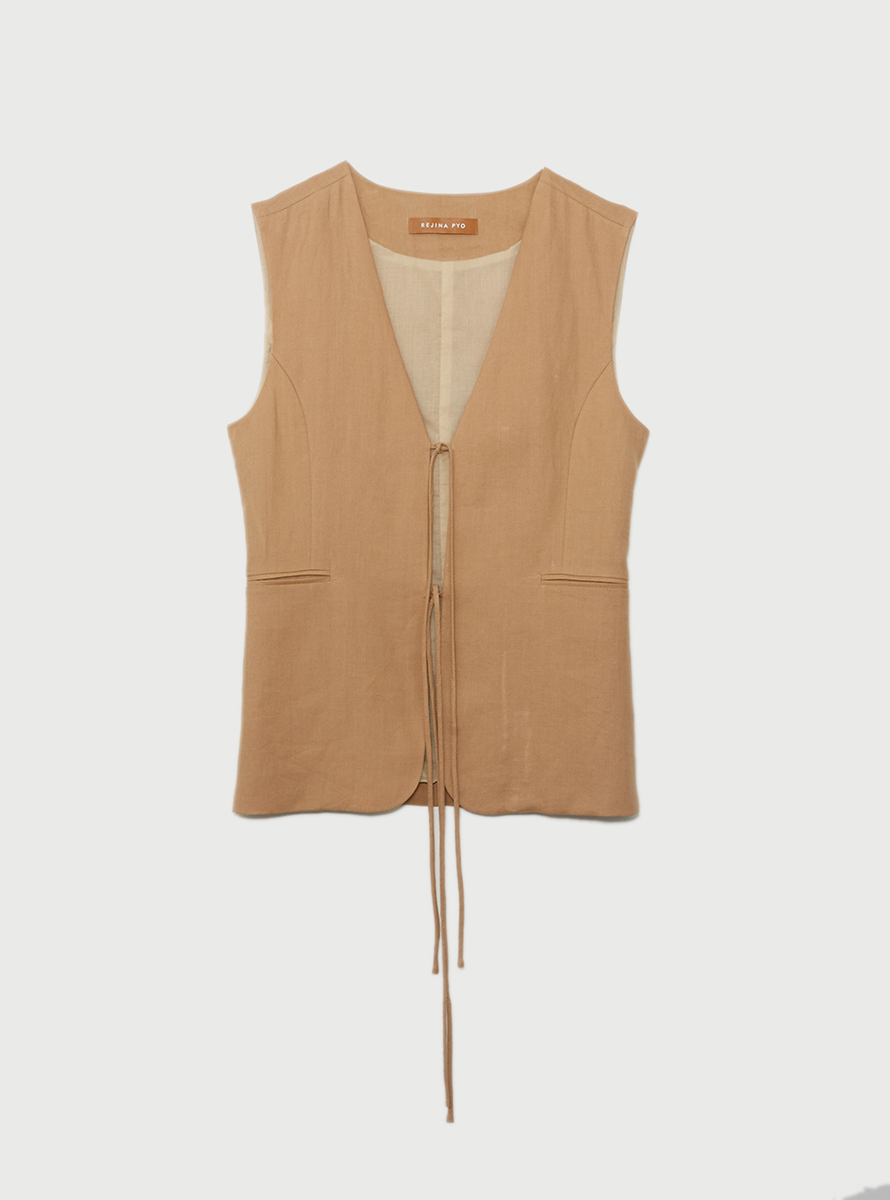 The neutral beige Kit Vest is a must-have piece this season. With a luxe tie front fastening and welt pocket detail, this chic piece offers the perfect loose fit and is fully lined, ensuring you turn heads.