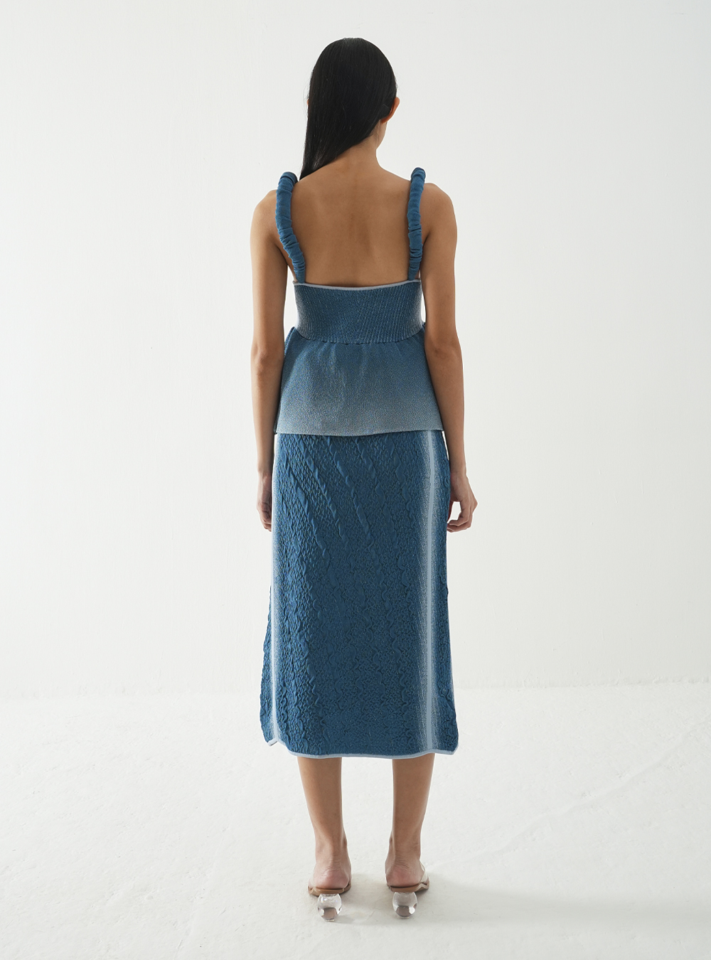 Home » Shop » Labbu 3D Bubble Wavy Midi Skirt in Denim Blue