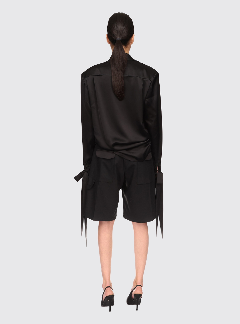 The Lace Cuff & Satin Bow Detail Shirt combines classic tailoring with feminine details, featuring lace cuffs and satin bow accents. Ideal for adding a touch of elegance to your everyday wardrobe or for dressing up for a special occasion.