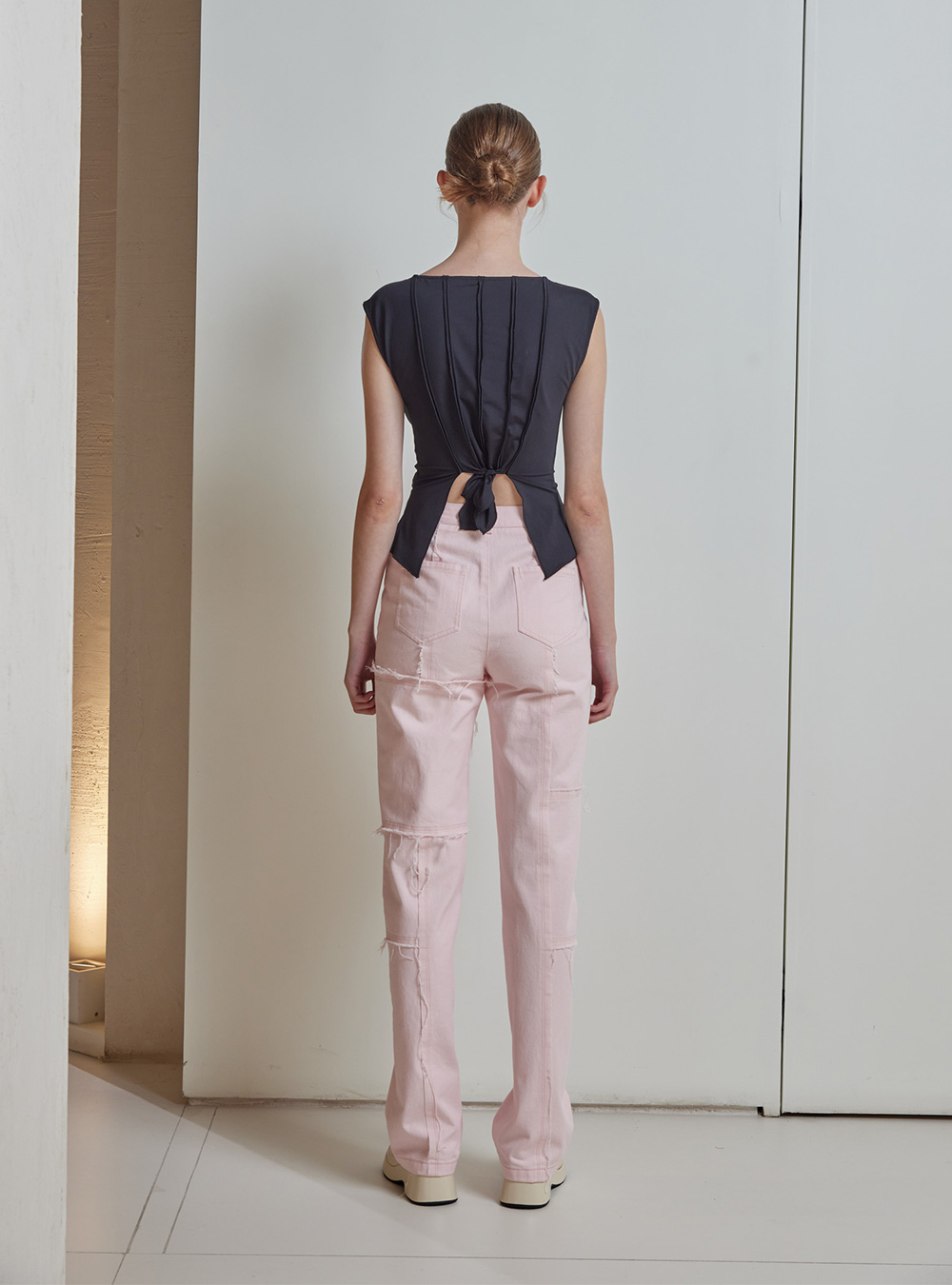 Get that chic and polished look with the Black Slit Hamming Point Sleeveless Top. Crafted with a slim-fit silhouette and sleek cutouts, this top will make an impression with any ensemble. The slit hamming points subtly highlight your waist, adding a subtle and sophisticated flair to your whole look.