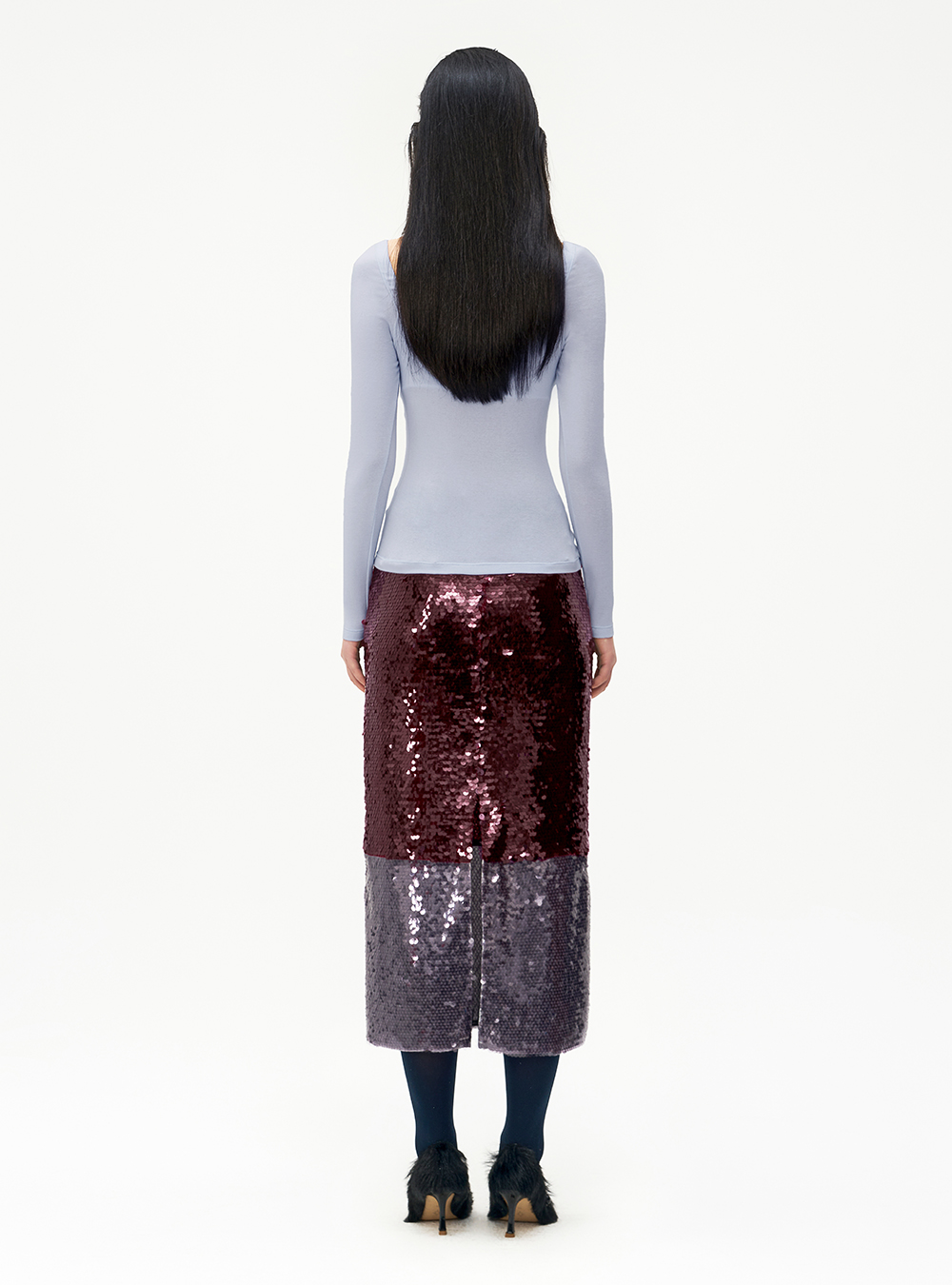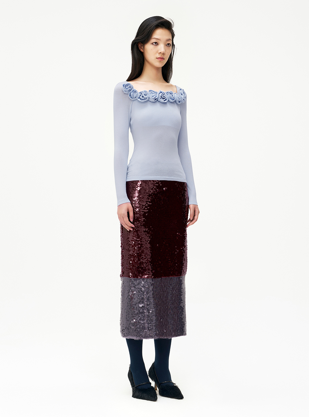 Louis Shengtao Chen Fall/Winter 2024 Light Blue Off Shoulder Jersey Rosary Top Size Guide