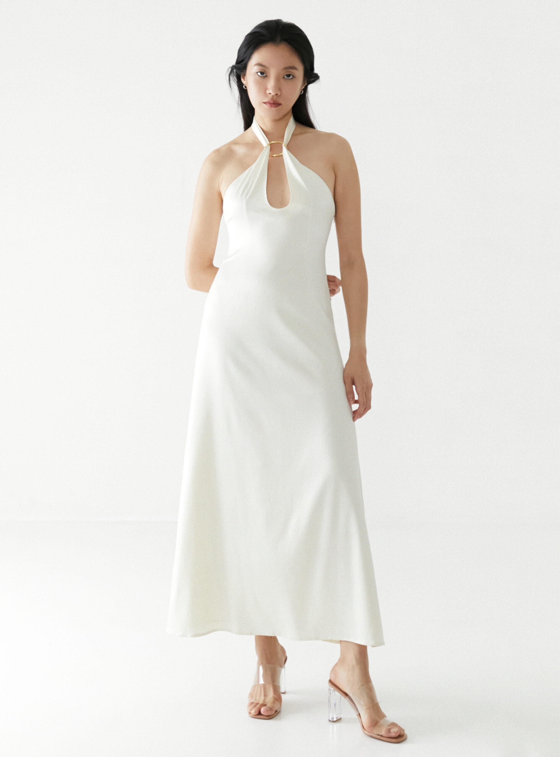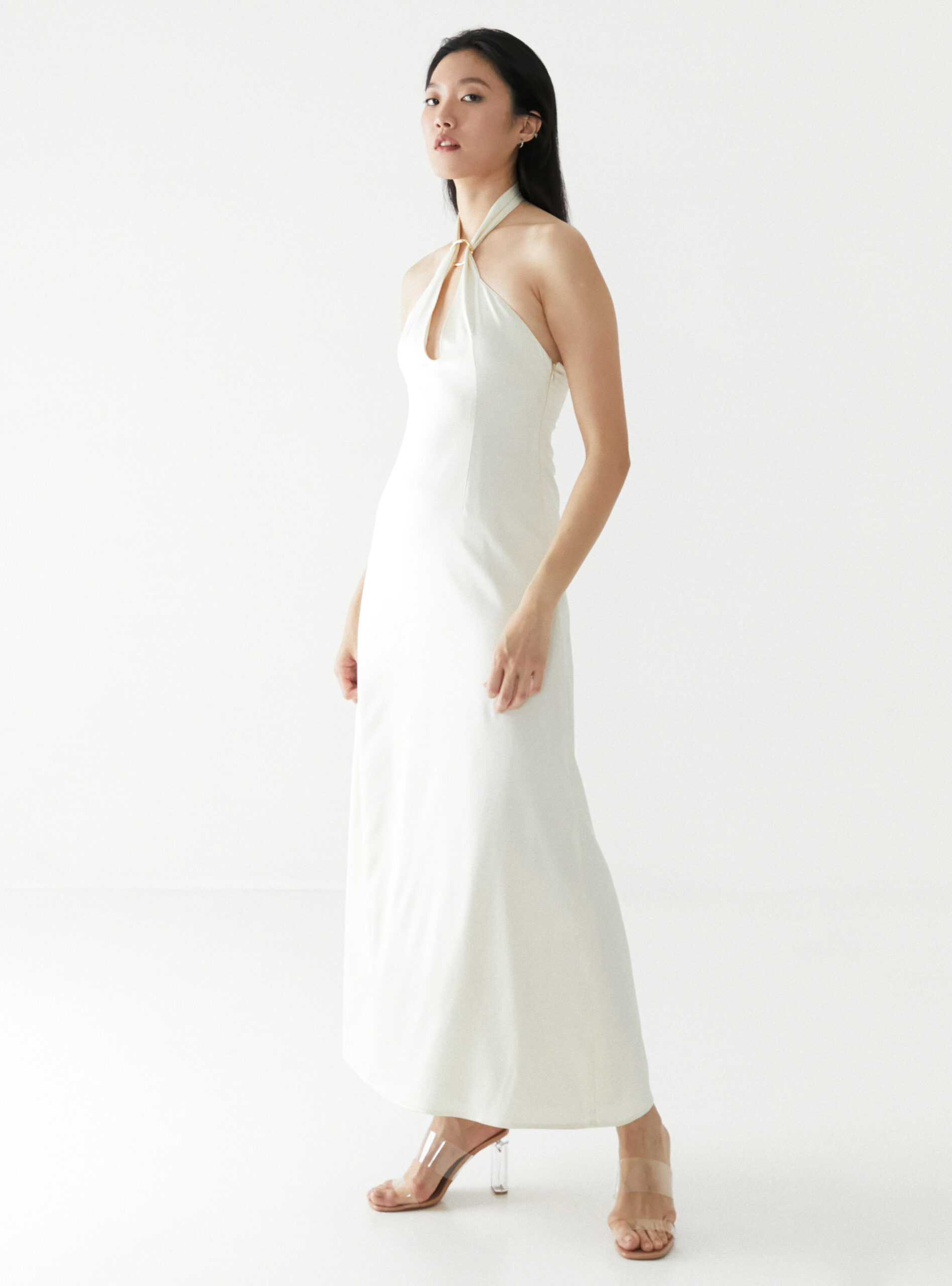 Designed with a hint of romance, our luxurious Lily Halter Neck Dress is a must-have for making a lasting impression. Featuring custom hardware and back-covered button fastening for a secure fit, complete the look with heels and strap sandals for an extra touch of glamour.