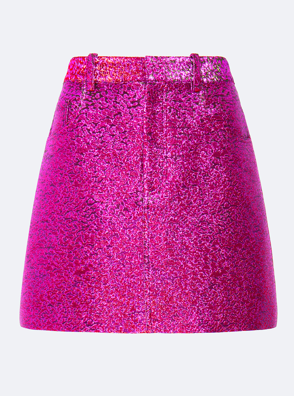 Mini skirt in a vibrant lurex jacquard fabrication. Zipper closure at front.