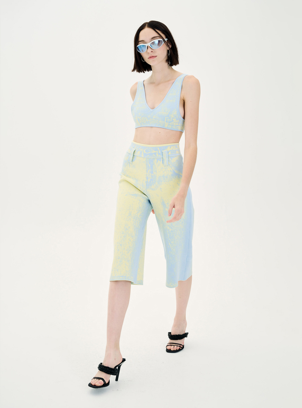 Elevate your casual wardrobe with the Lychee Fake Denim Print Shorts. The faux denim print adds a touch of edge to these shorts, creating a versatile piece for various casual occasions.